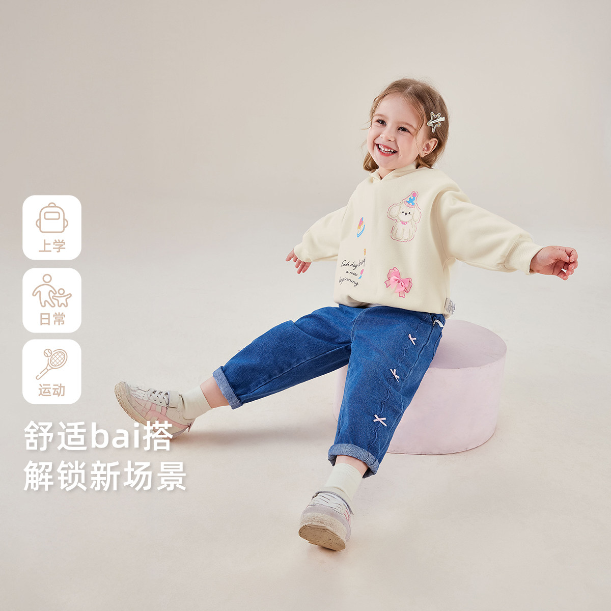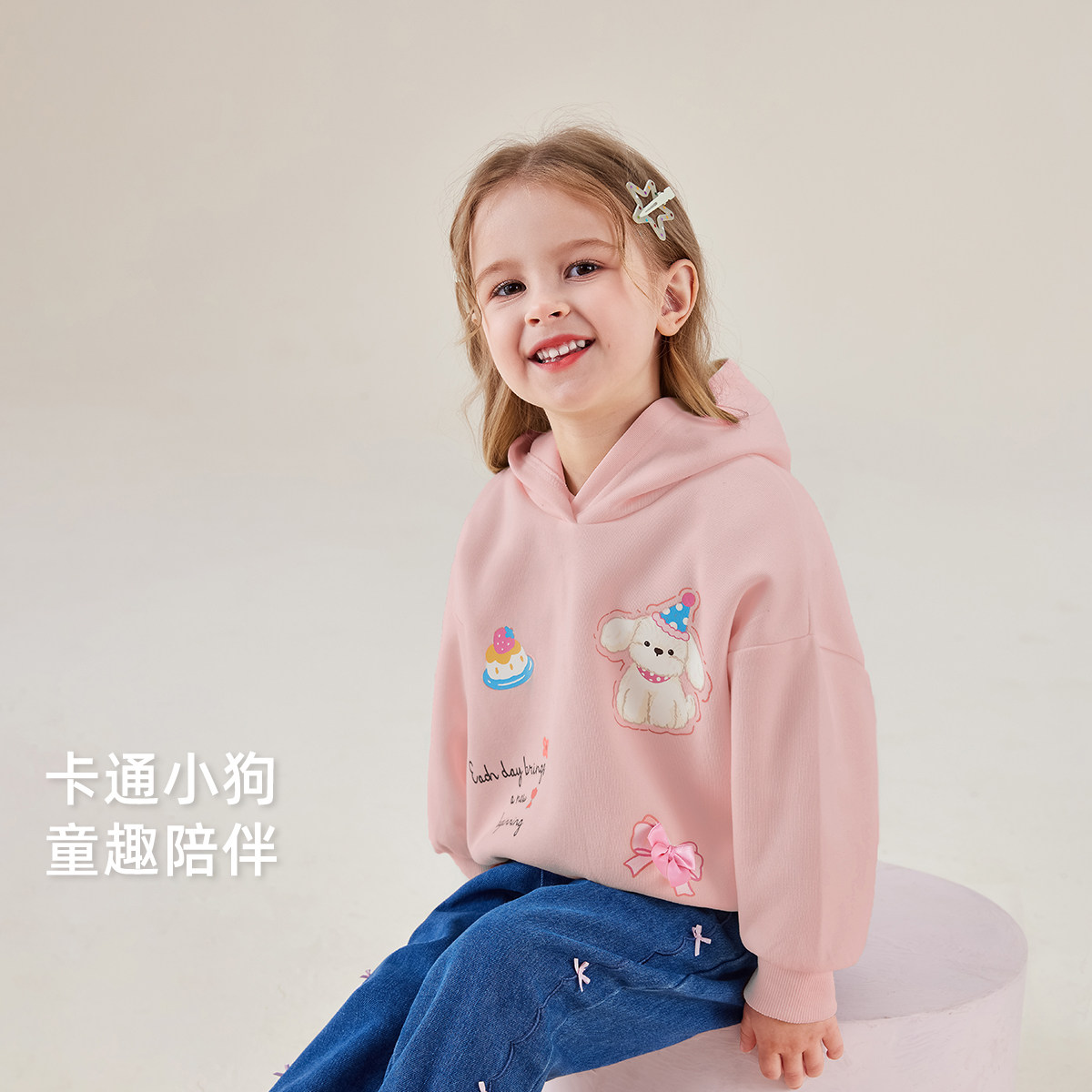 [7A抗菌]女童连帽卫衣小童卡通长袖衣服春装宝宝春季儿童衣服女孩