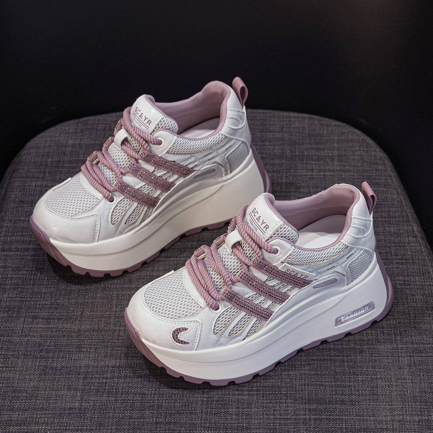 内增高小白鞋小个子搭配裙子的鞋子2026透气网面休闲运动鞋老爹鞋