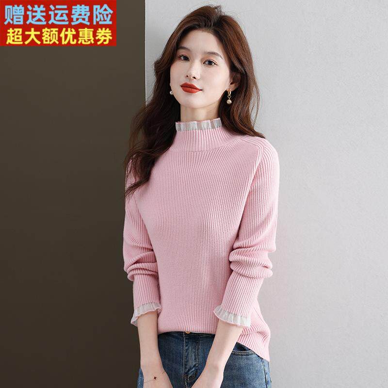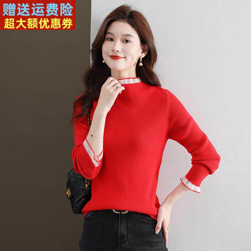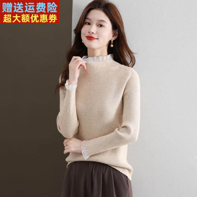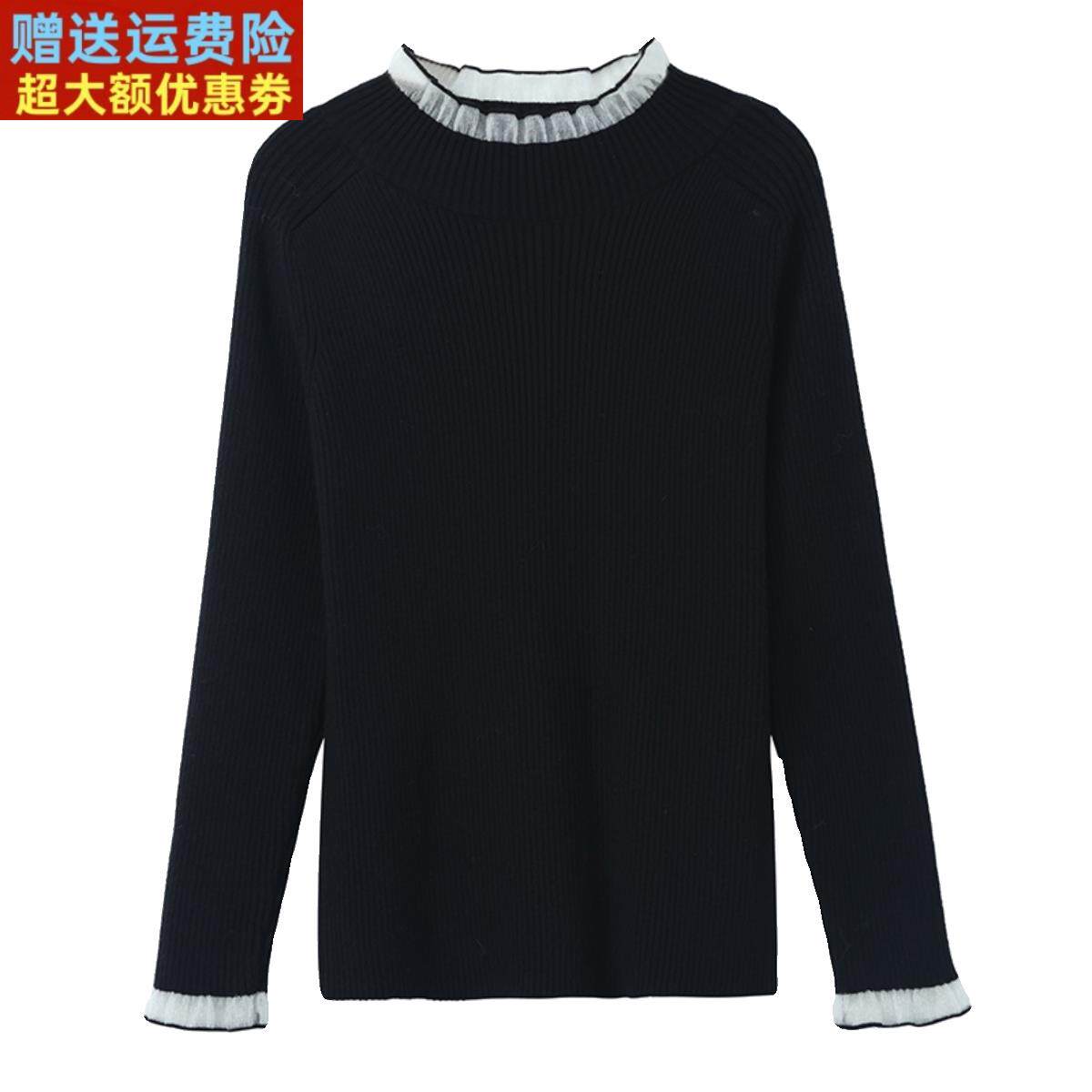 半高领修身毛衣女款2025新款显瘦木耳领针织衫内搭黑色羊毛打底衫
