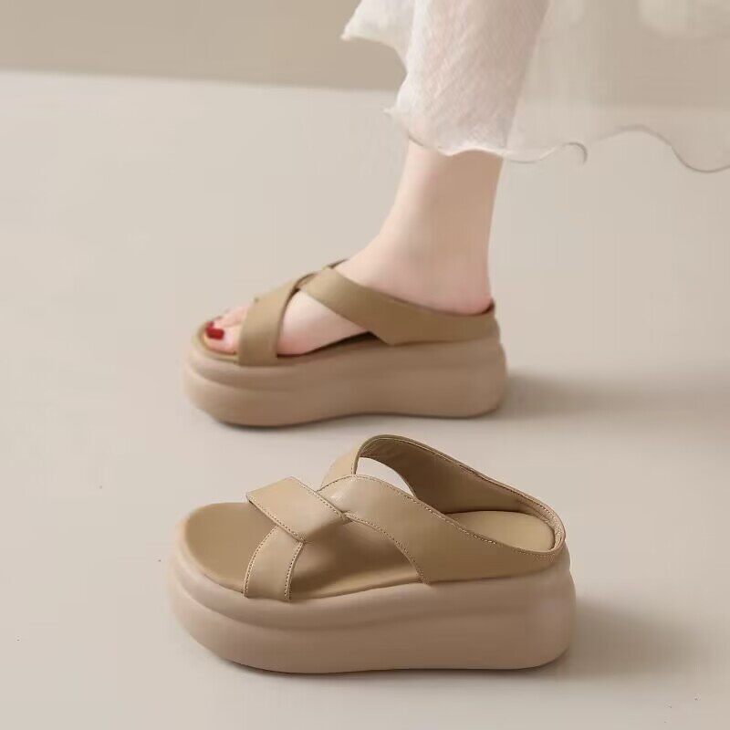 断码品牌鞋真皮凉拖鞋女夏季新款外穿松糕鞋厚底时尚百搭沙滩凉鞋