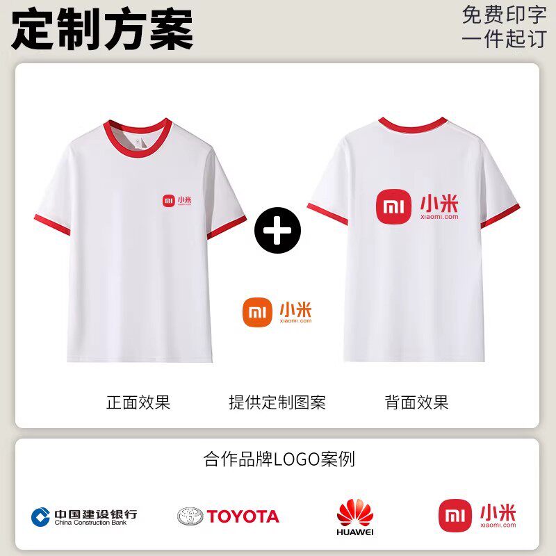 撞色定制t恤工作服工衣餐饮印字logo班服广告文化衫纯棉插肩短袖