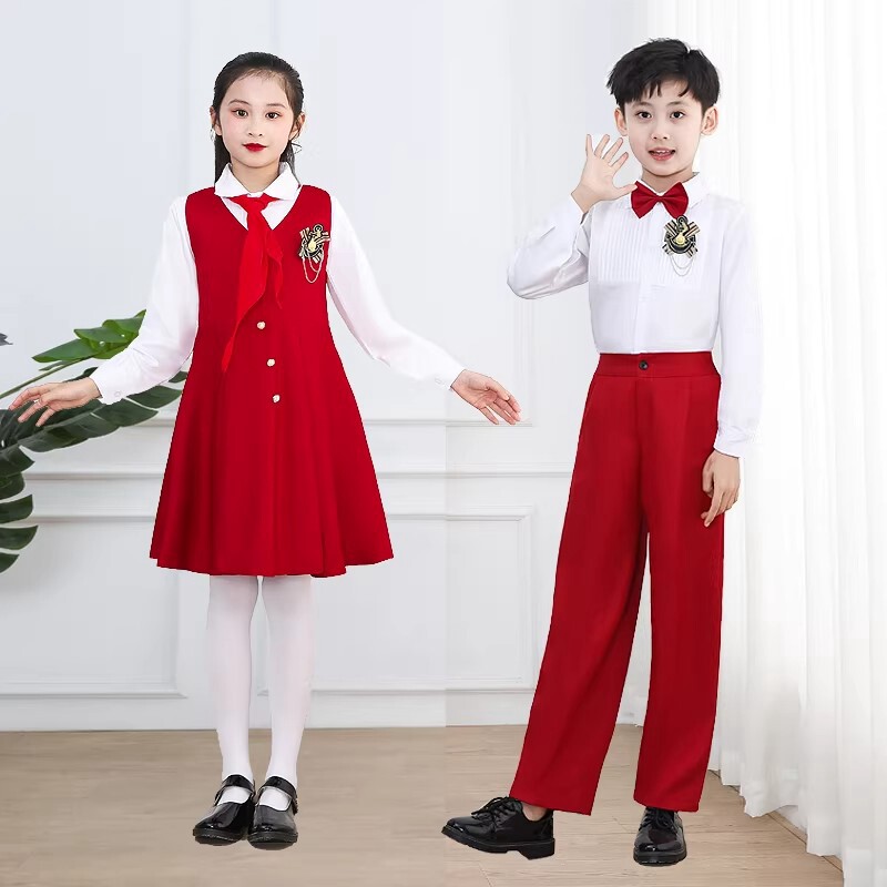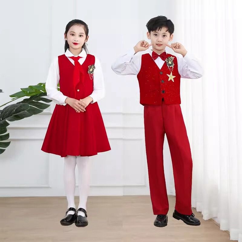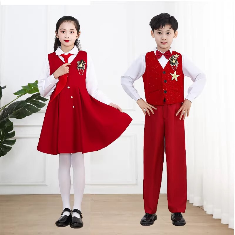 六一儿童合唱服男女童红色朗诵歌咏比赛服装中小学生红旗手表演服