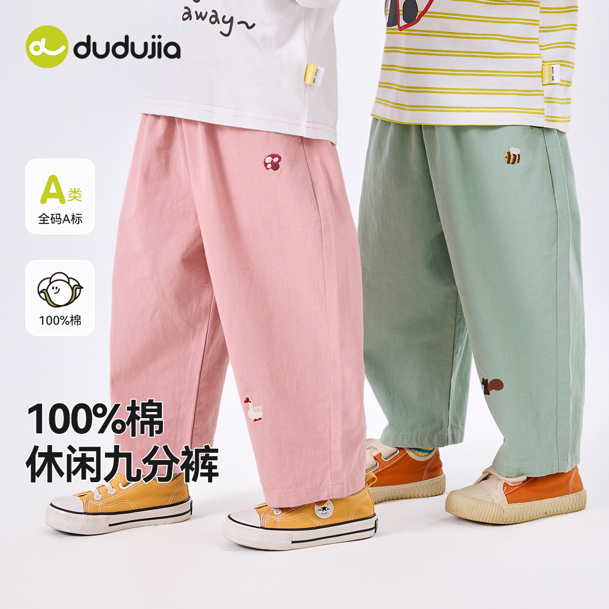 【100%棉】嘟嘟家宝宝春季纯棉裤子男童休闲裤儿童九分裤女童春装