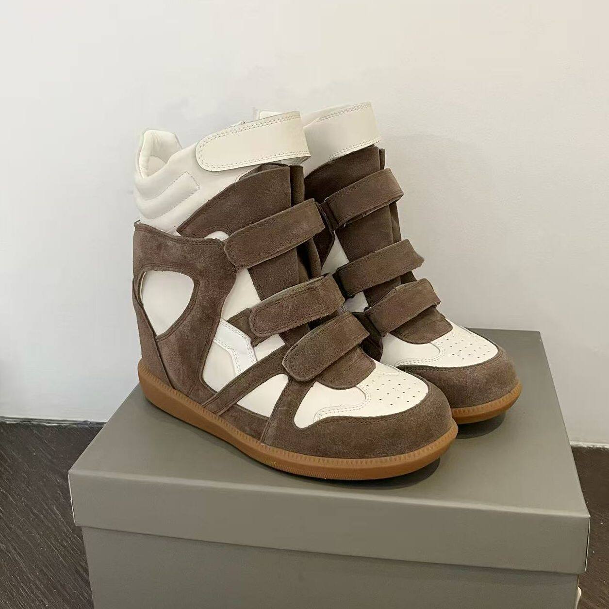 7CM内增高真皮欧洲站高帮小白鞋女2025秋季新款魔术贴休闲运动鞋