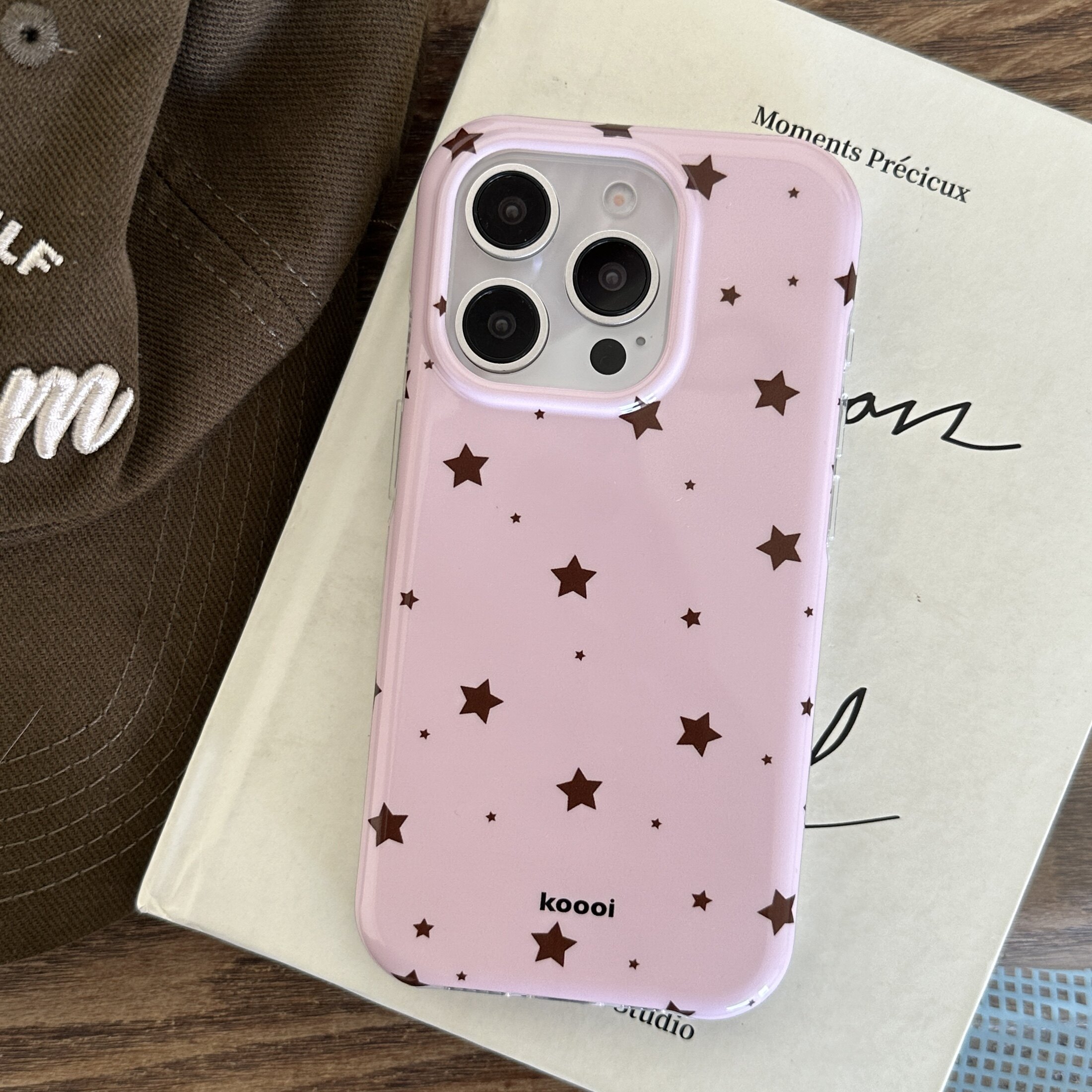 ins简约韩系少女纯色星星气质棕适用苹果17Pro新款手机壳高级感iphone16promax复古小众15秋冬辣妹14全包潮套