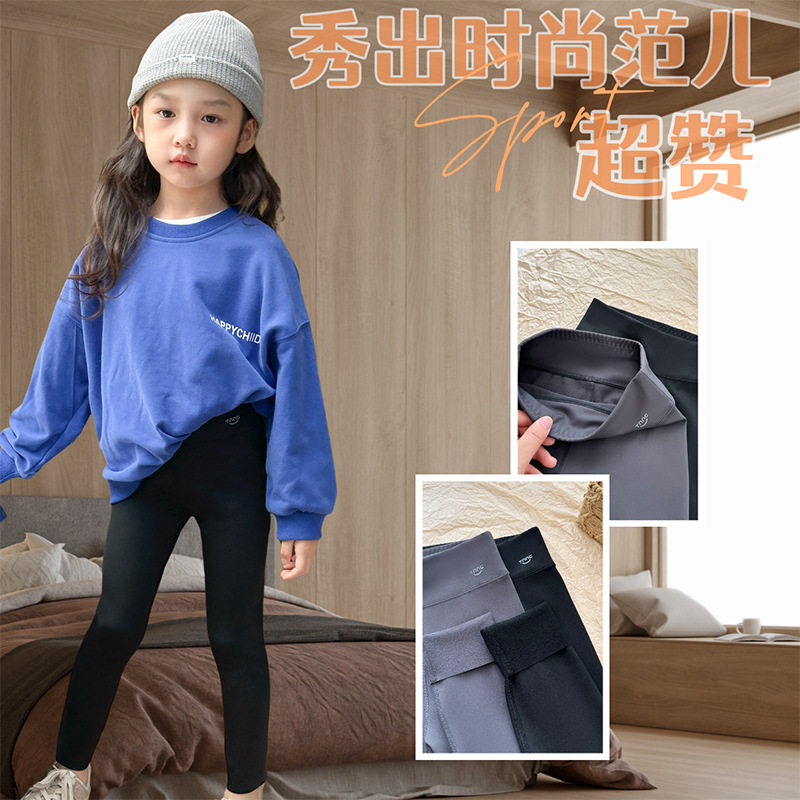 早春磨毛儿童打底裤韩版显瘦女童薄绒紧身打底裤子女孩外穿弹力裤