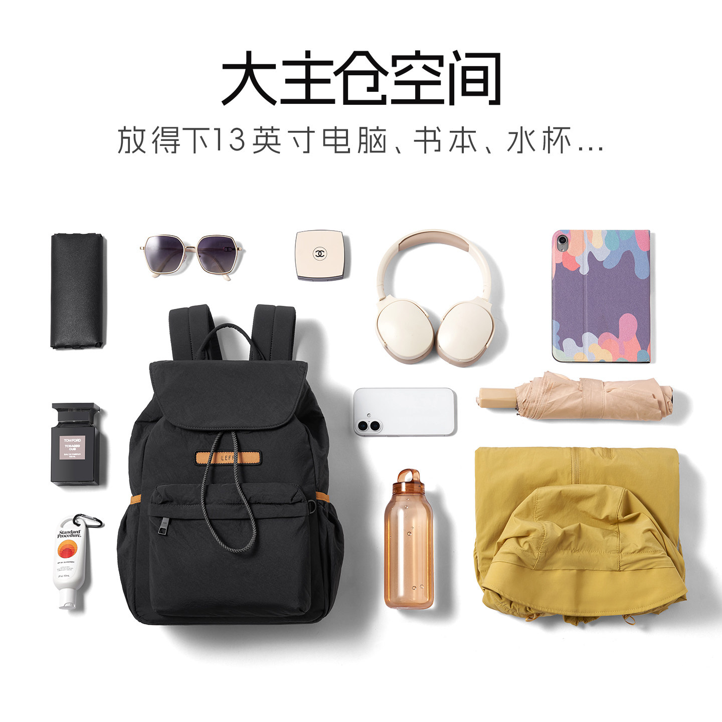 311线报网描述:翻盖抽绳束口设计,扩大容量,方便拿取物品