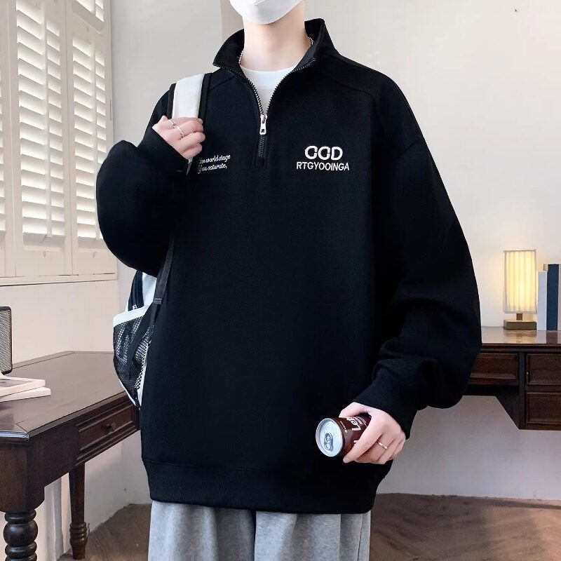 春秋季半拉链立领卫衣男孩初中高中学生长袖t恤青少年大童上衣服