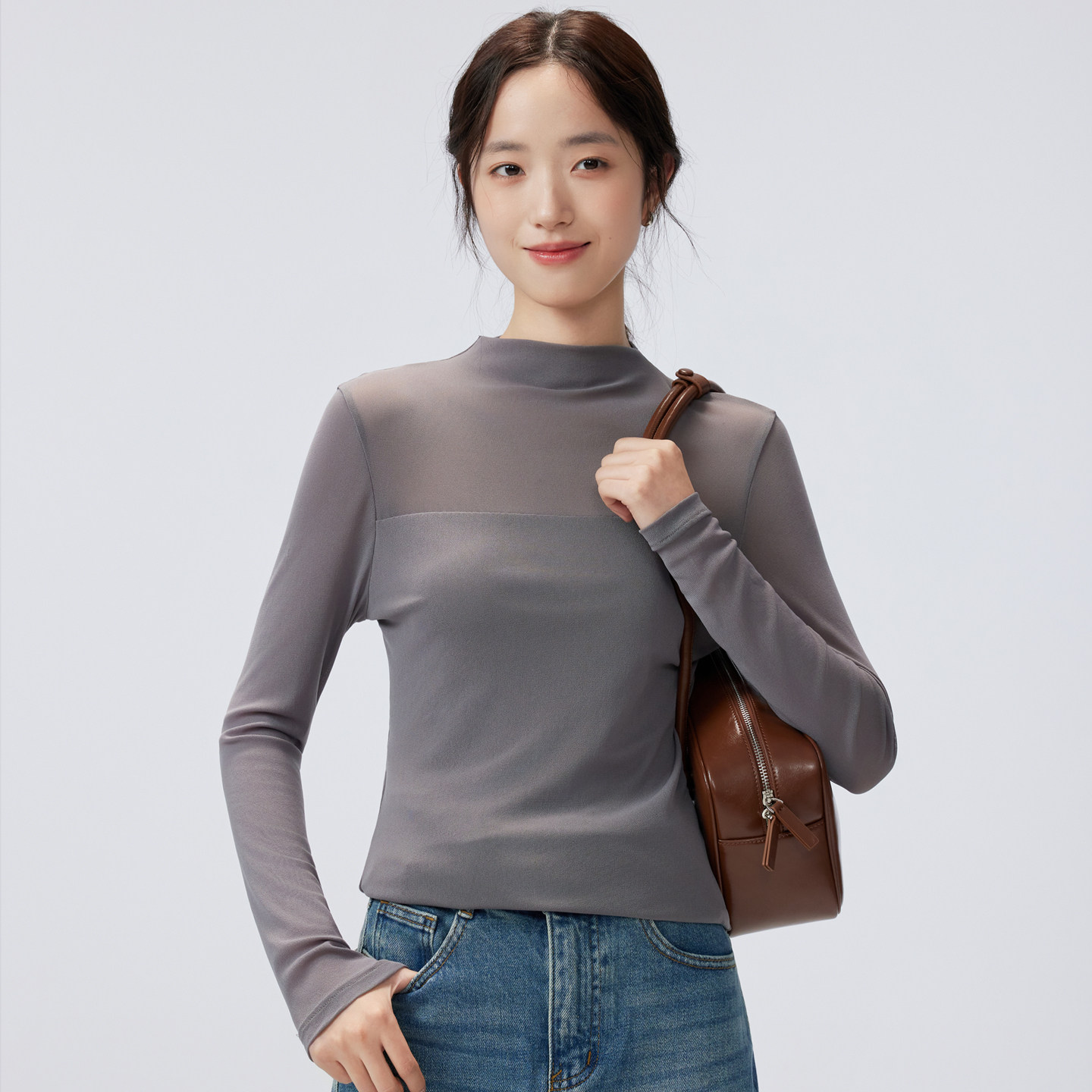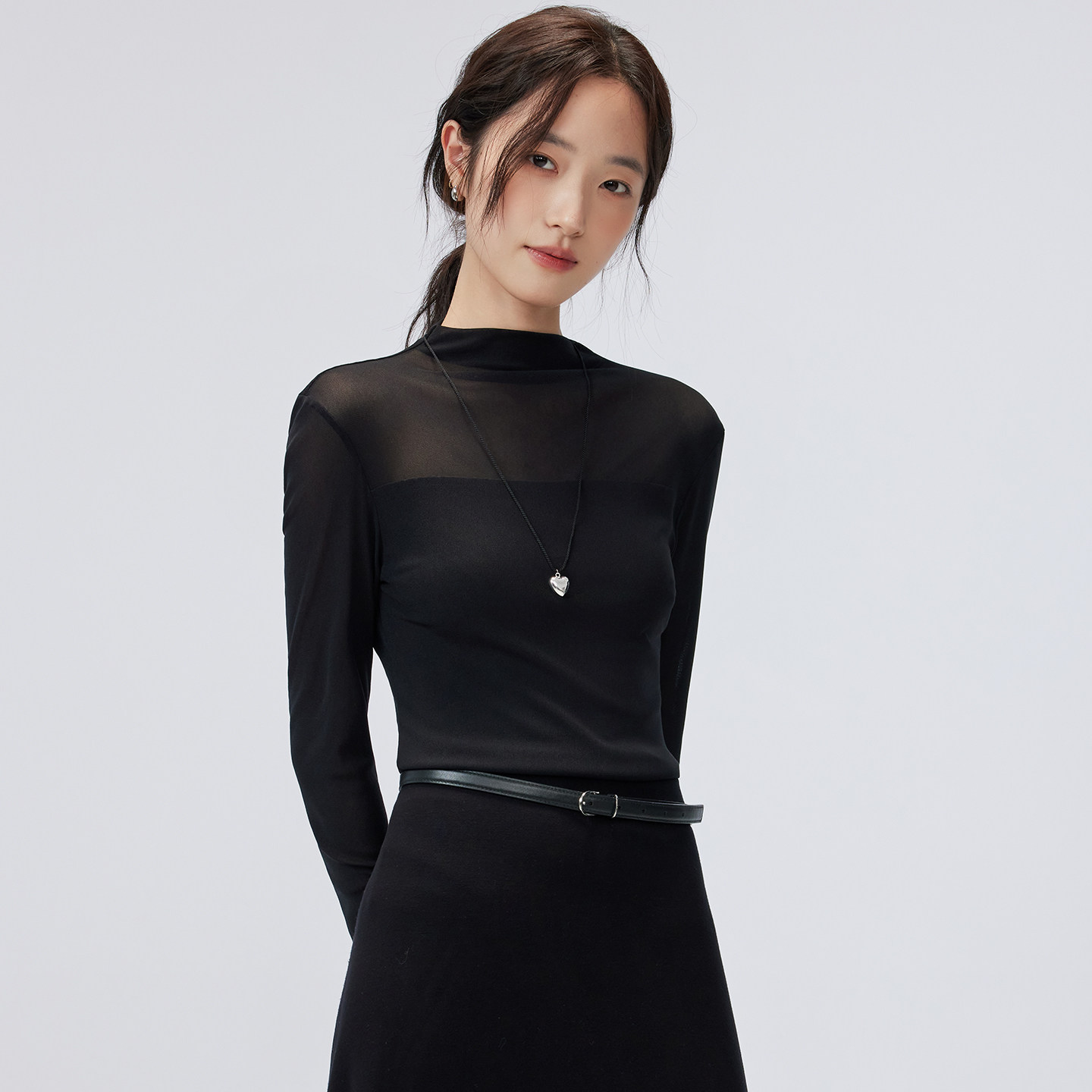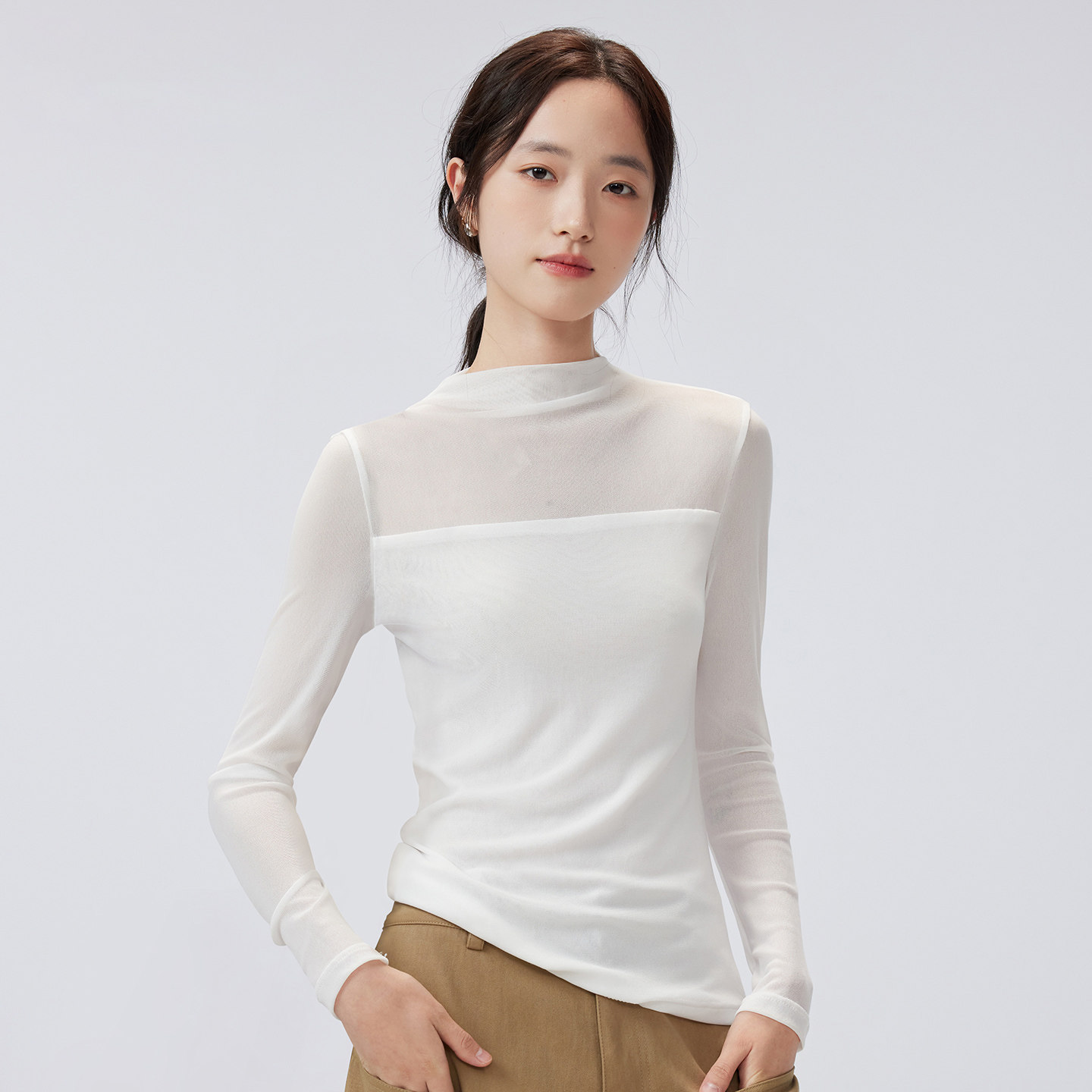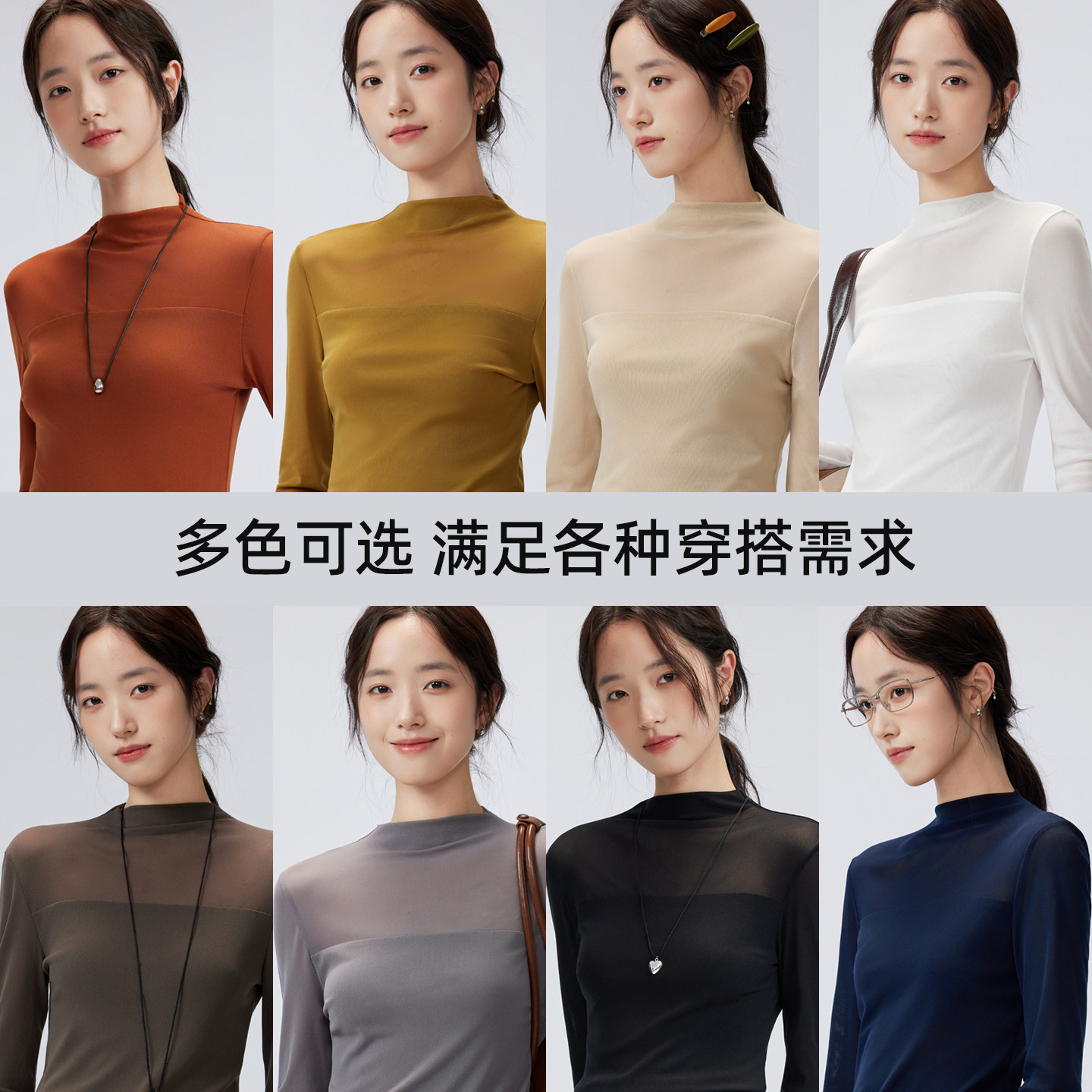 春秋网纱打底衫女款半高领t恤修身性感内搭蕾丝小衫微透薄款上衣