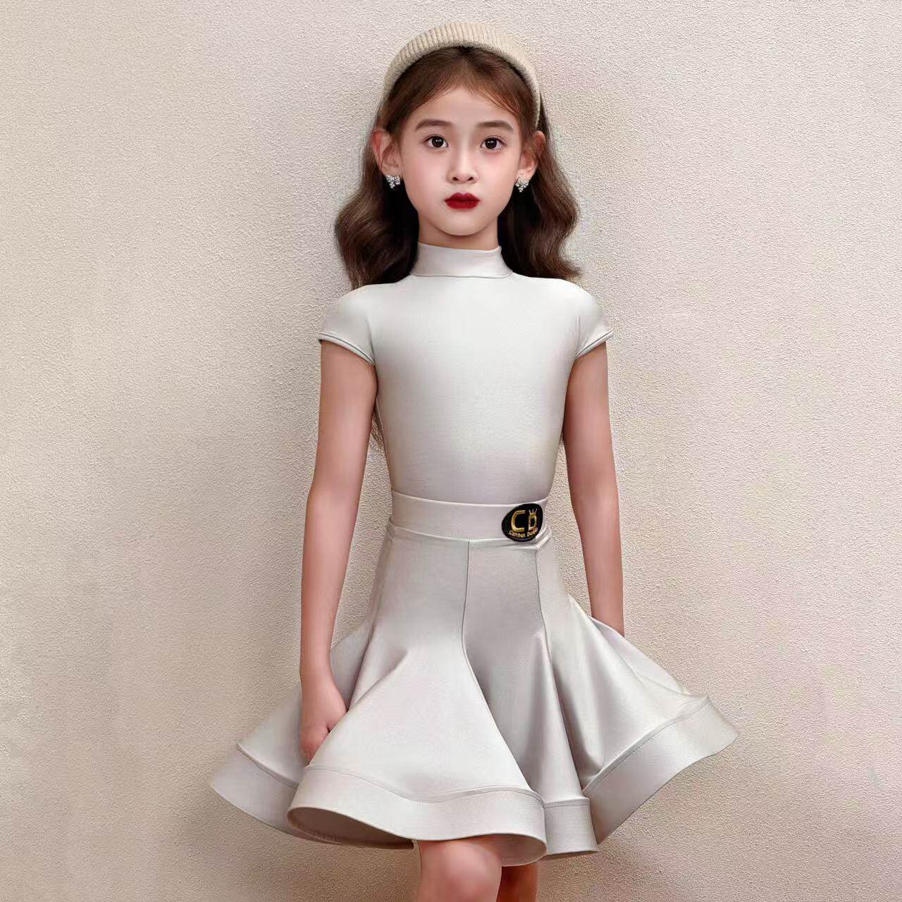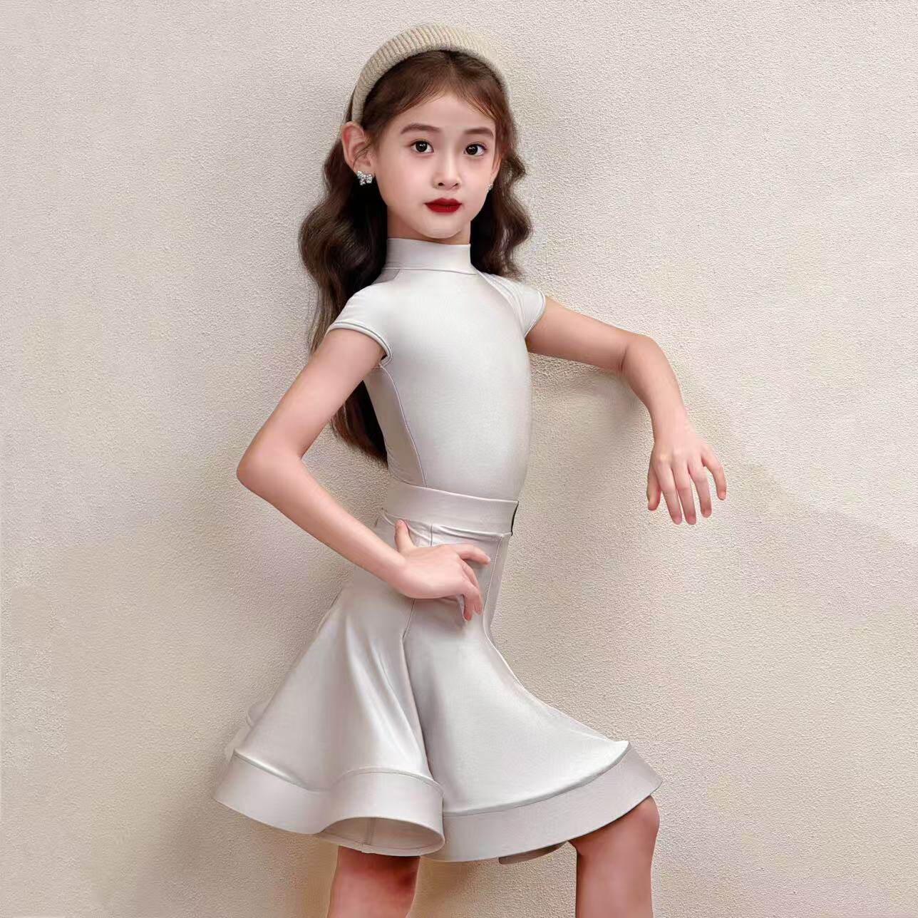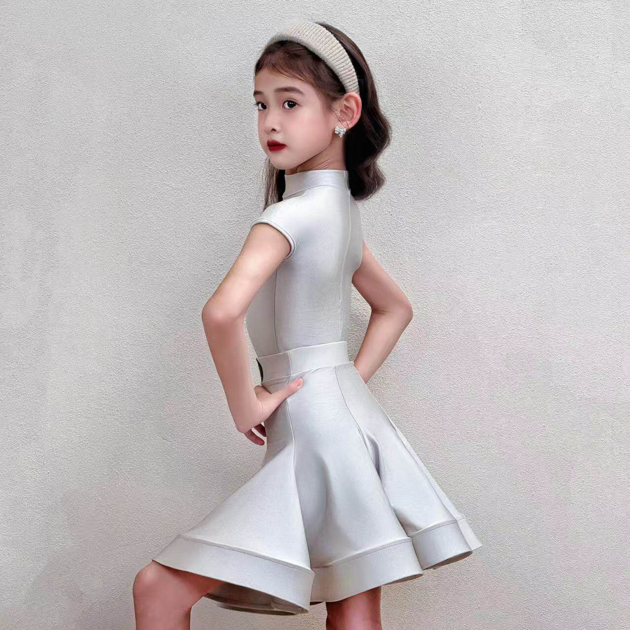 CD卡门氨纶银狐短袖拉丁舞女童少儿表演考级专业比赛标准规定服