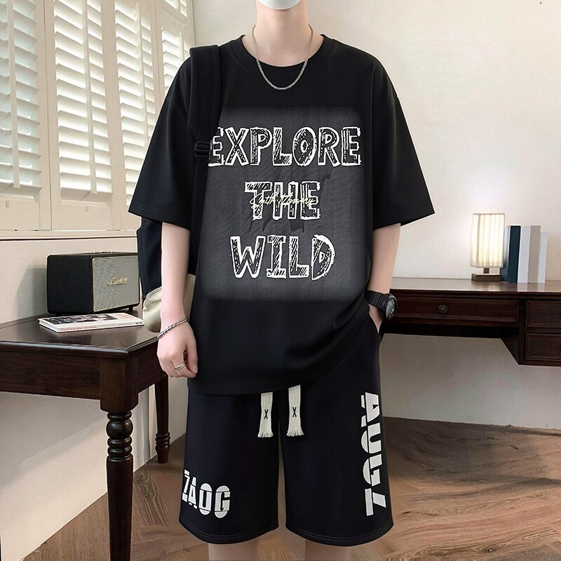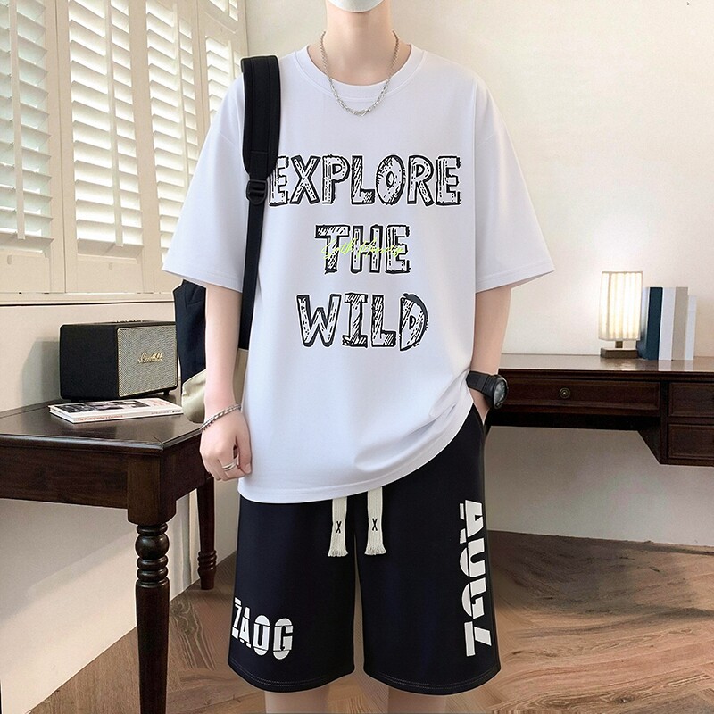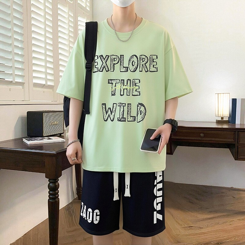 青少年纯棉短袖t恤2026新款男孩初高中休闲学生大童夏装两件套装