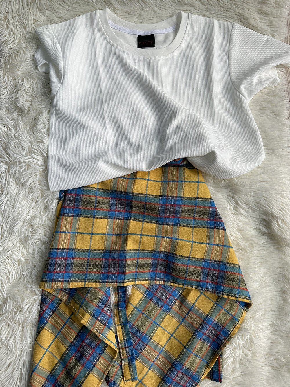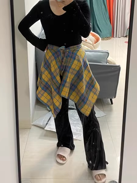 一片式黄色格子遮挡裙屁帘女下摆瑜伽裤遮臀裙打底半身遮屁股神器