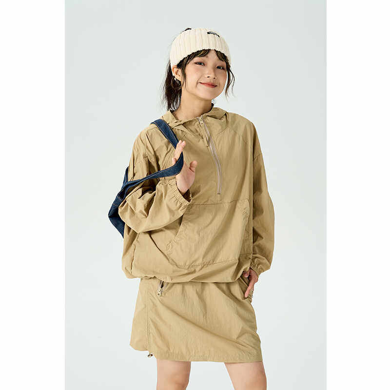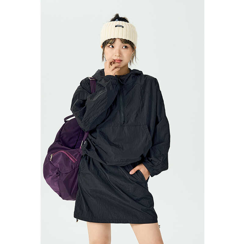 新款休闲运动连帽冲锋衣外套短裙两件套装女夏小个子防晒衣薄款潮