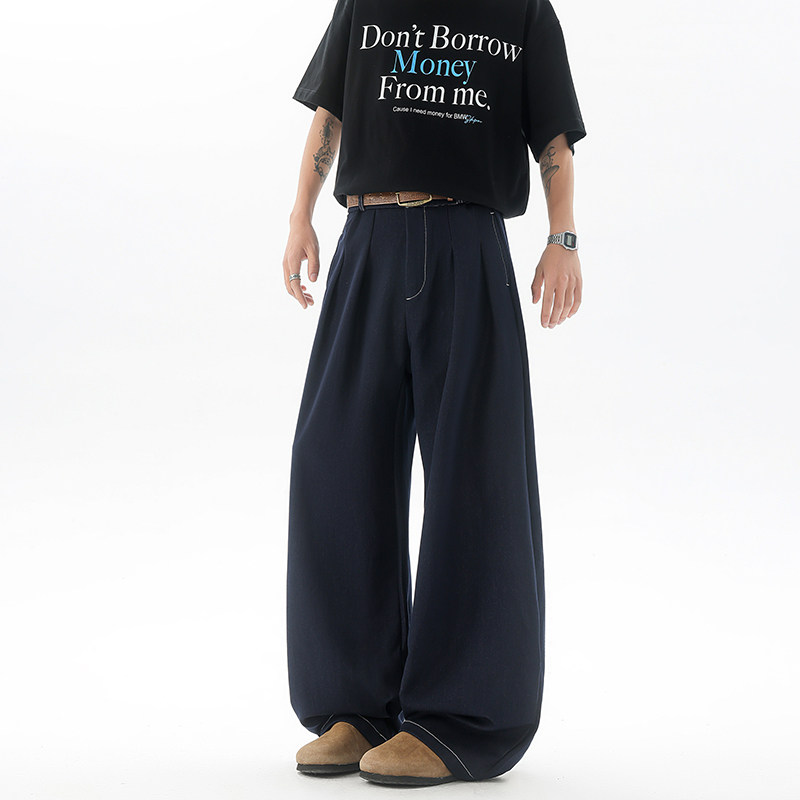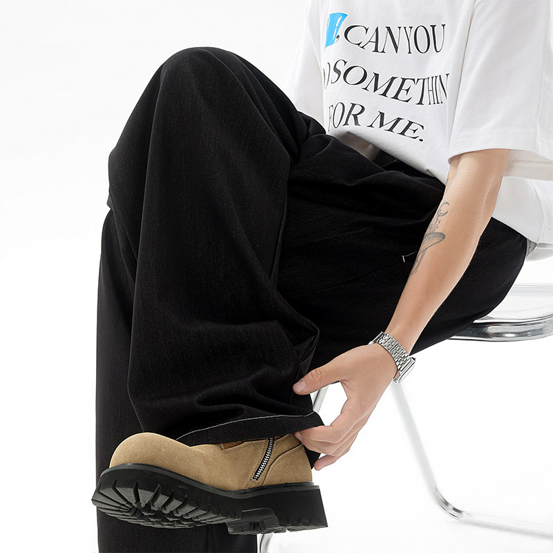 2026新款美式风宽松冰丝仿牛仔裤阔腿裤男夏季休闲百搭垂感长裤子
