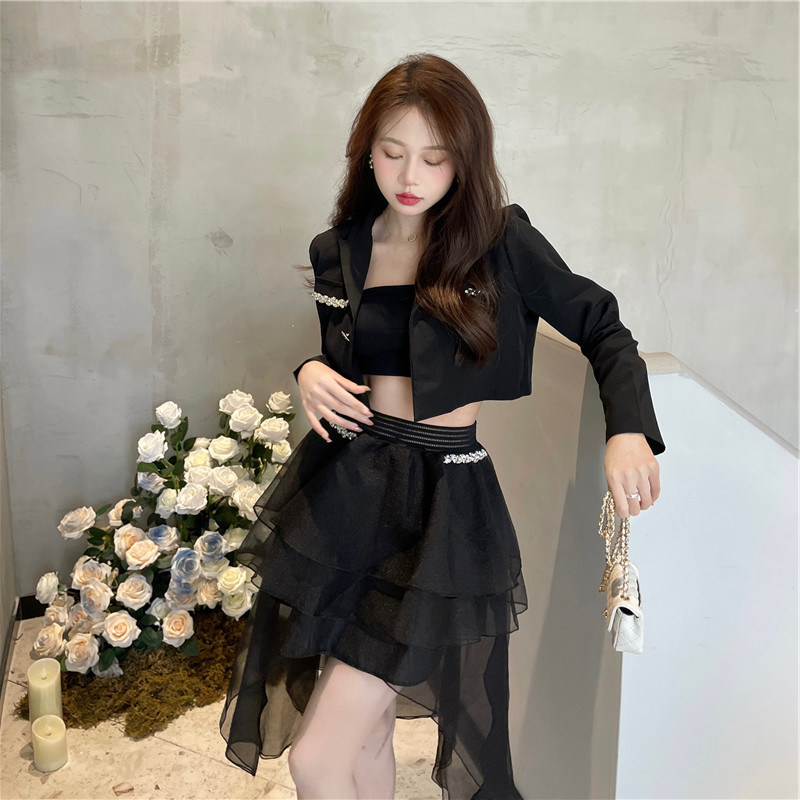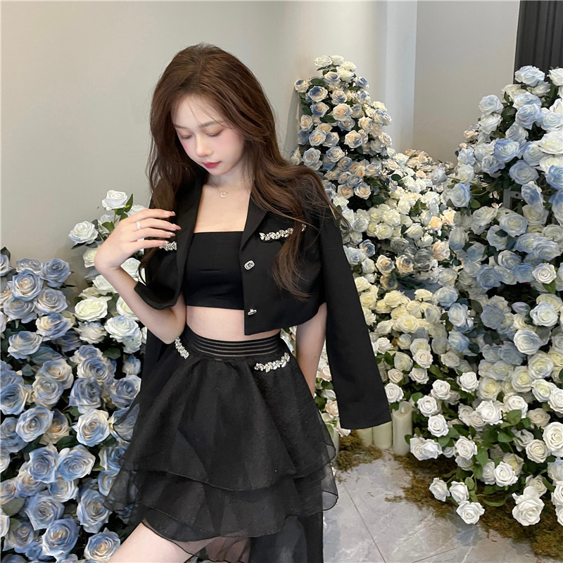 短款小西装外套设计感西服上衣女款春秋小个子不规则半身裙两件套