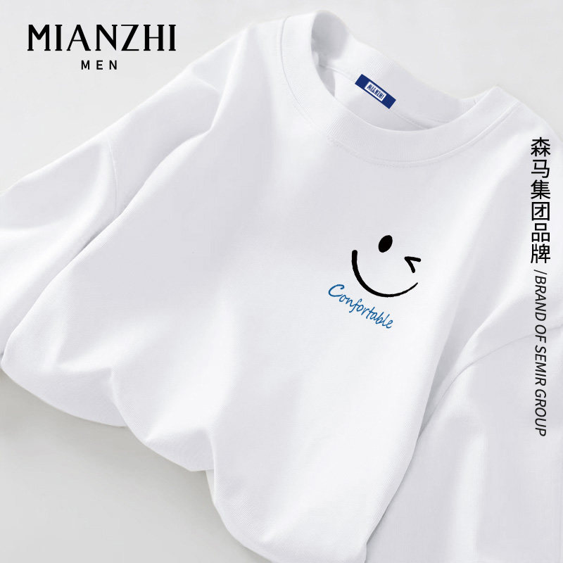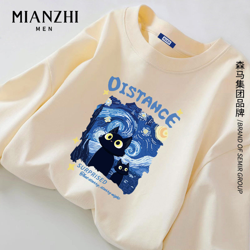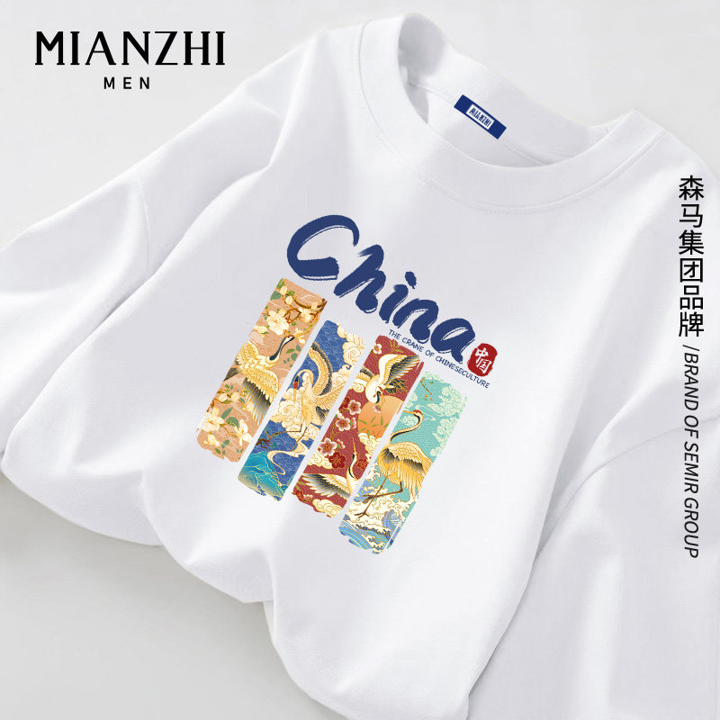 棉致2026春秋枫叶长袖男款t恤潮牌宽松大码国风米色纯棉内搭上衣
