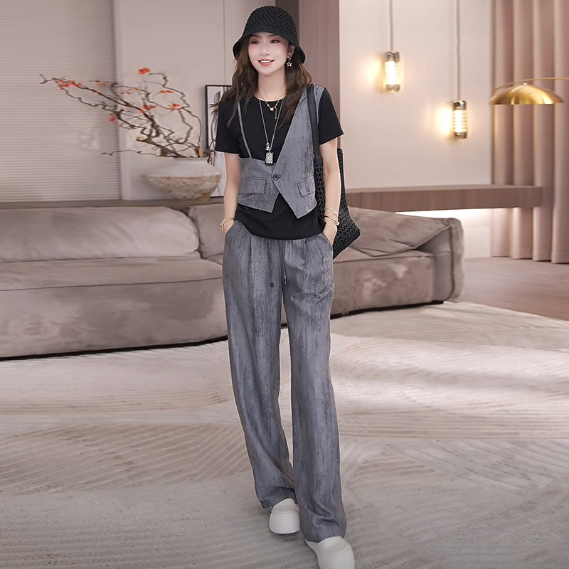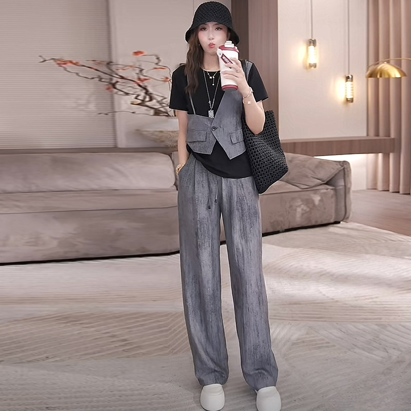 炸街穿搭时尚套装女2026夏季新款减龄短袖上衣阔腿裤两件套小个子