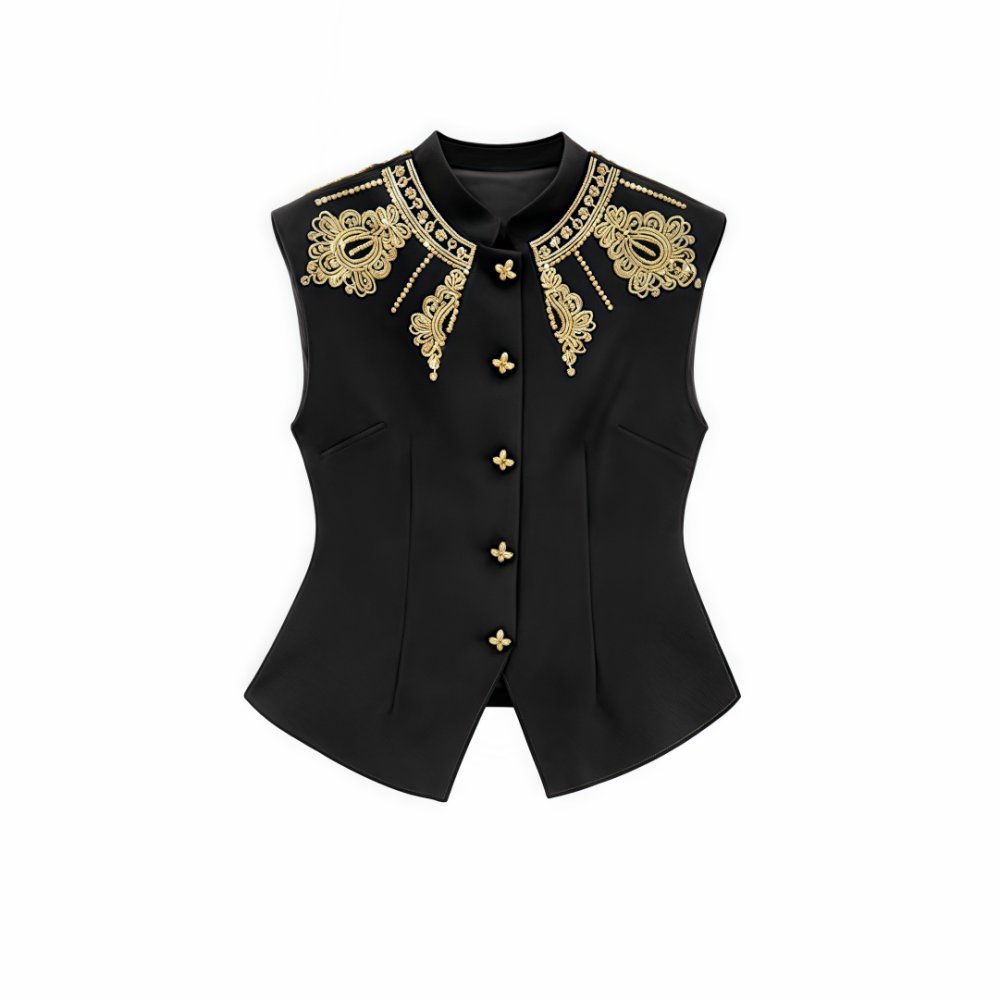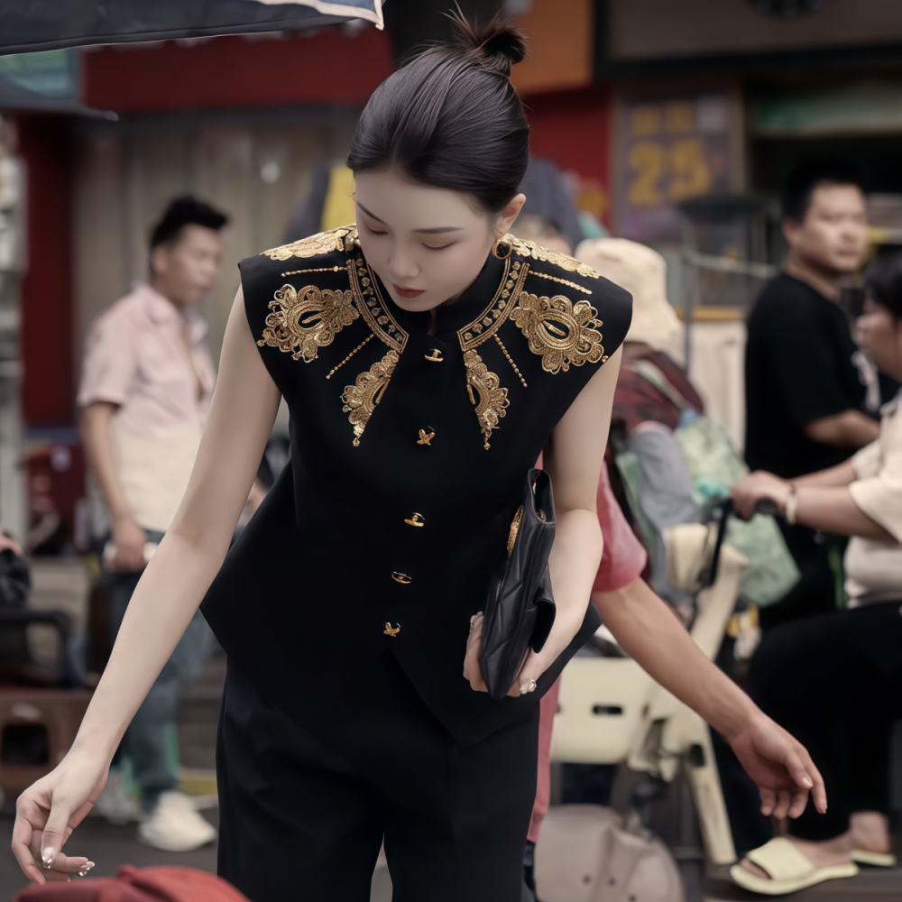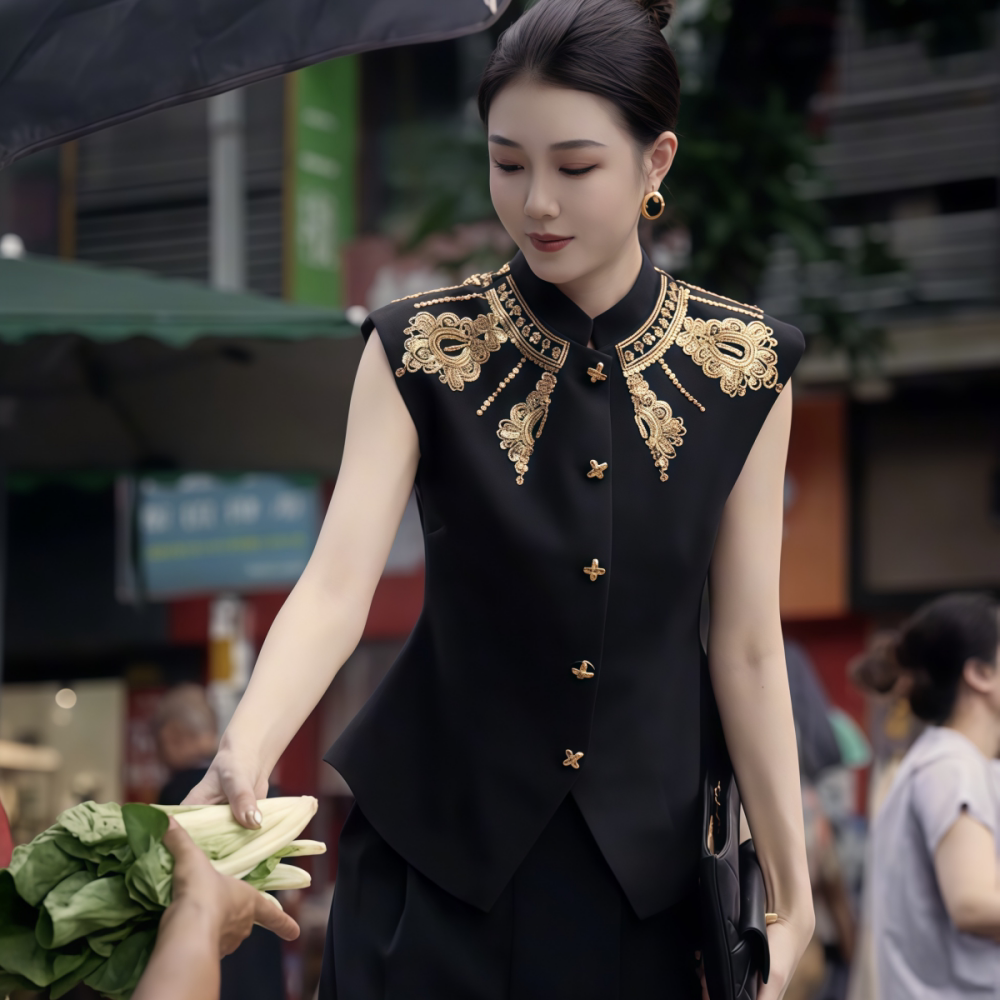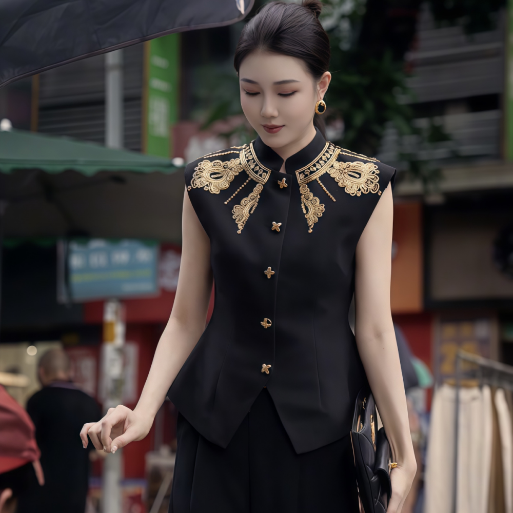 2026年夏季新款国风时髦独特高级收腰纯色印花黑色短款马甲外套女