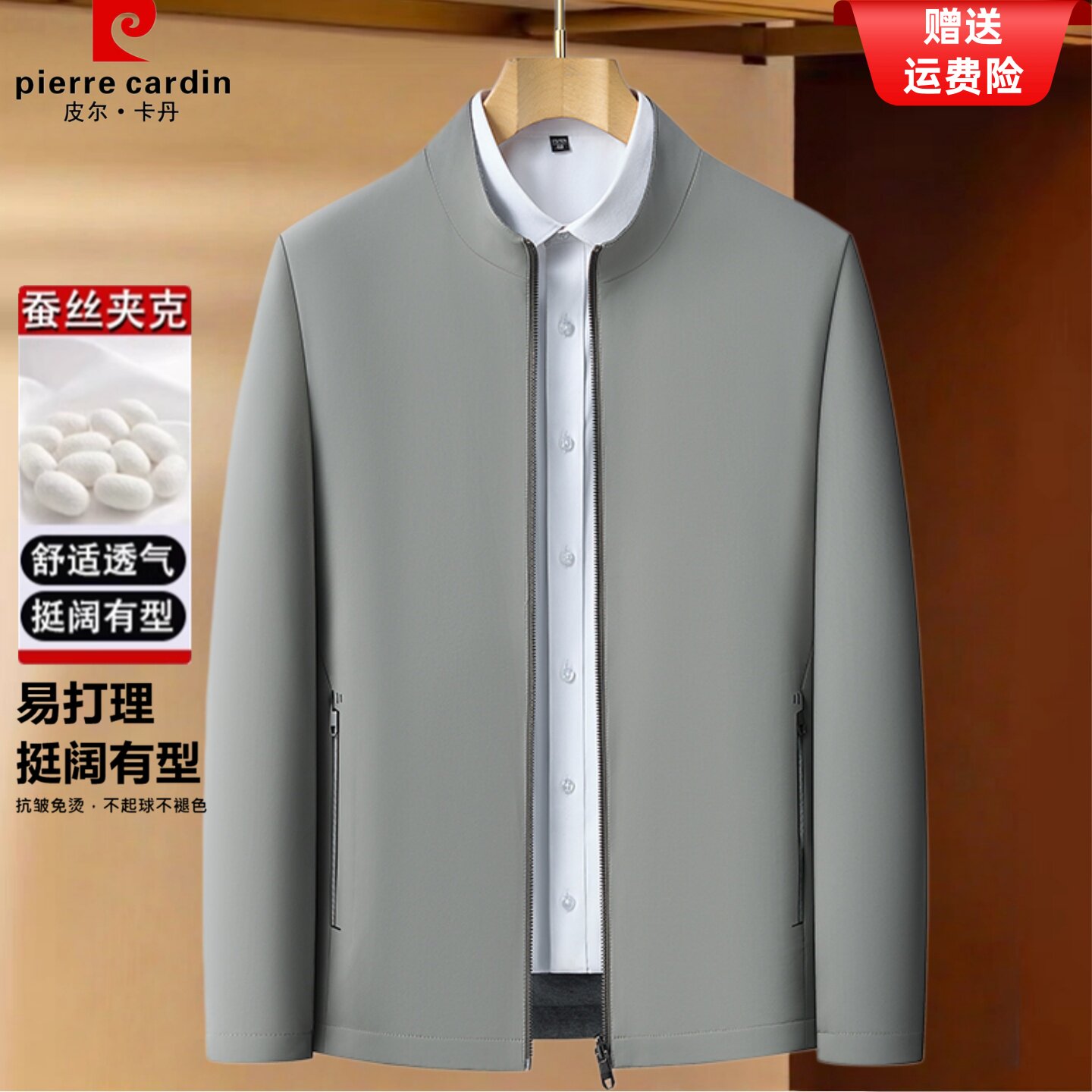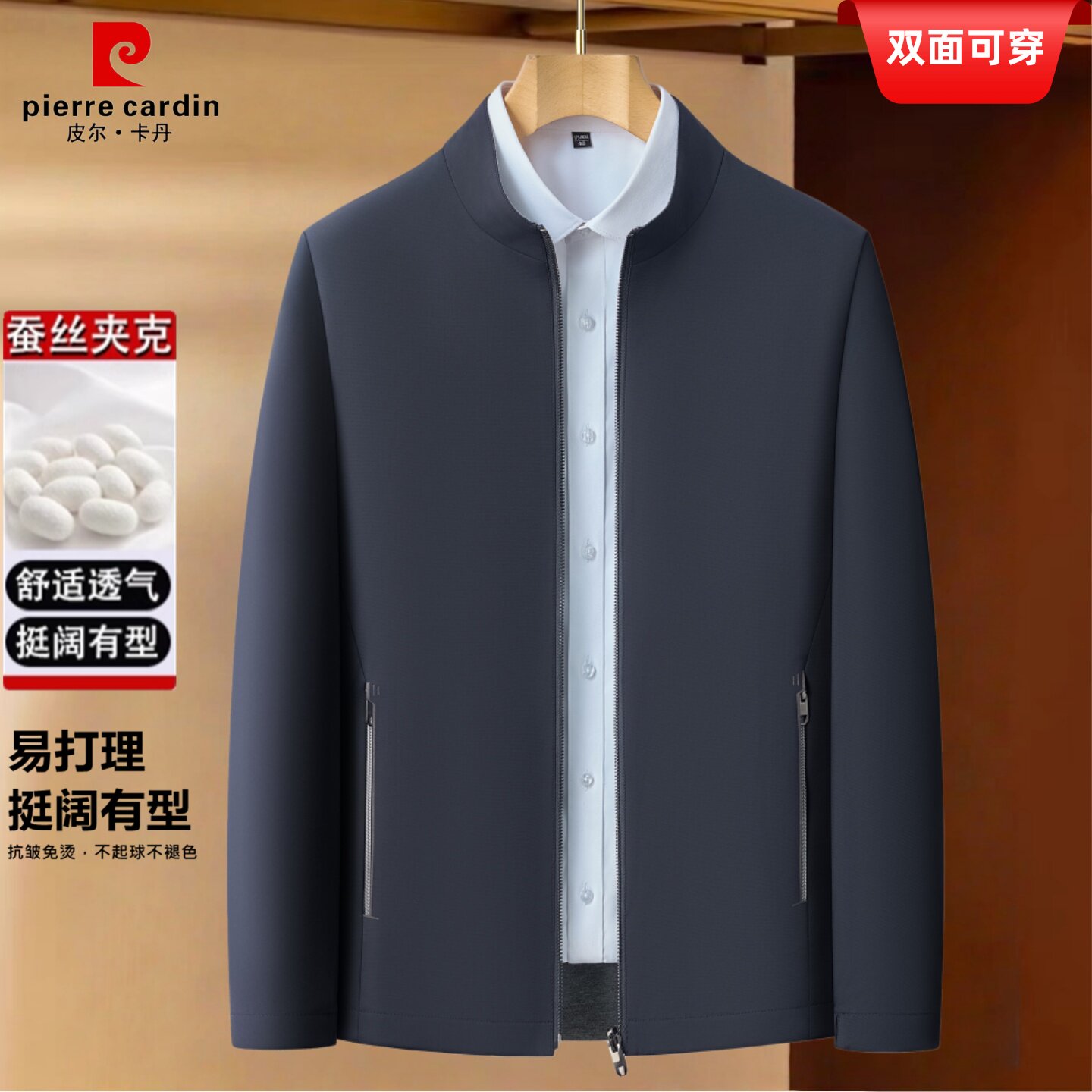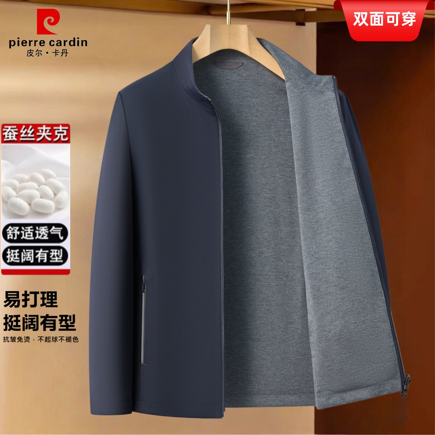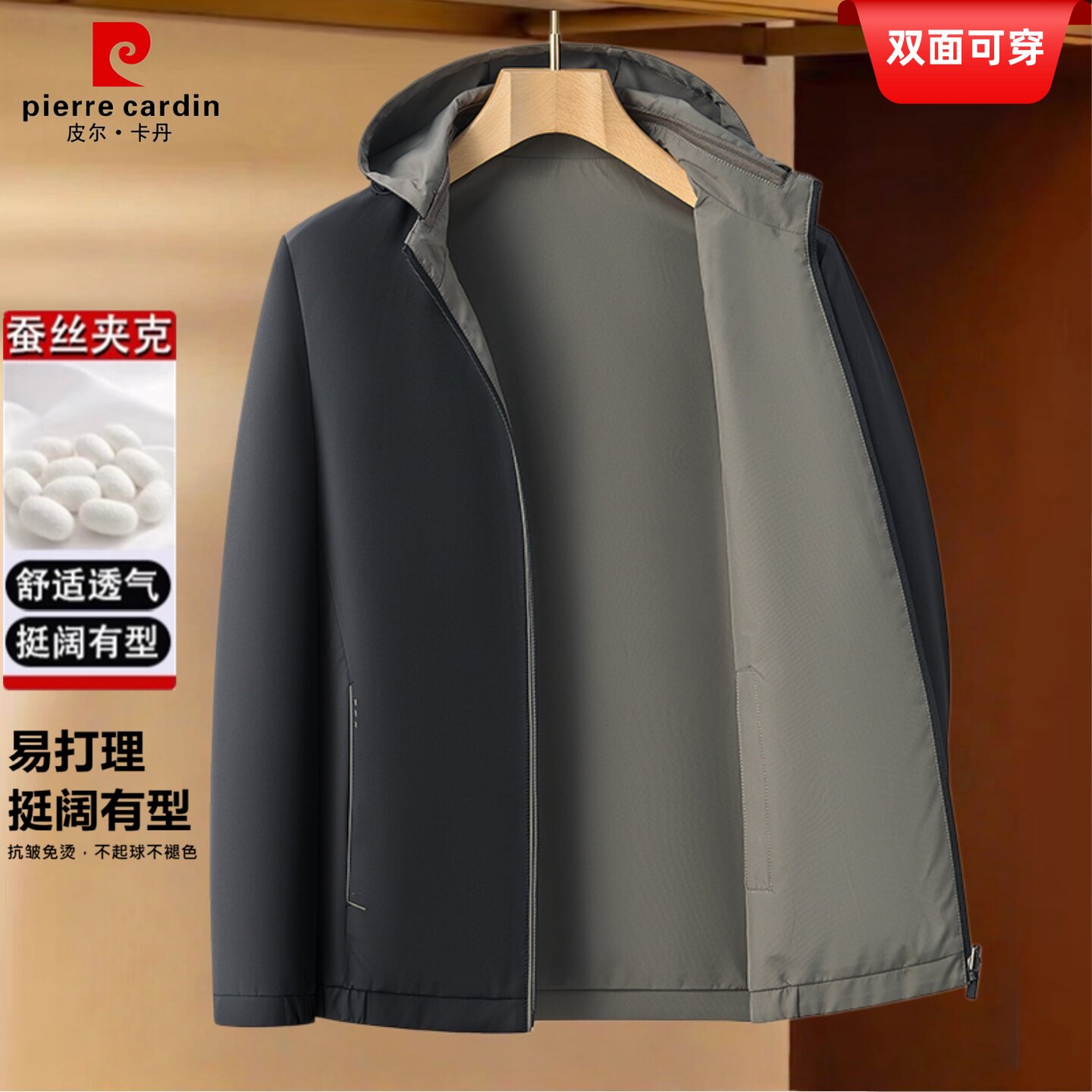 皮尔卡丹双面穿夹克外套2026新款男士商务休闲桑蚕丝爸爸中年春装