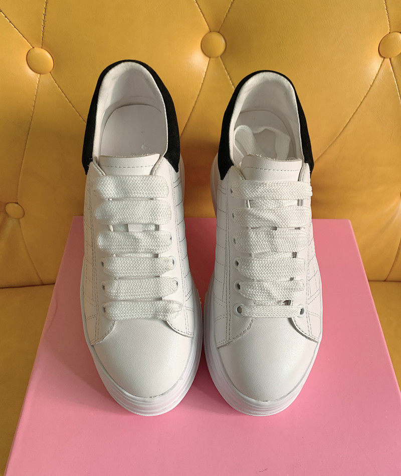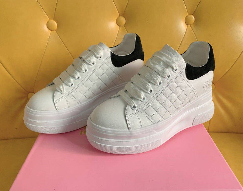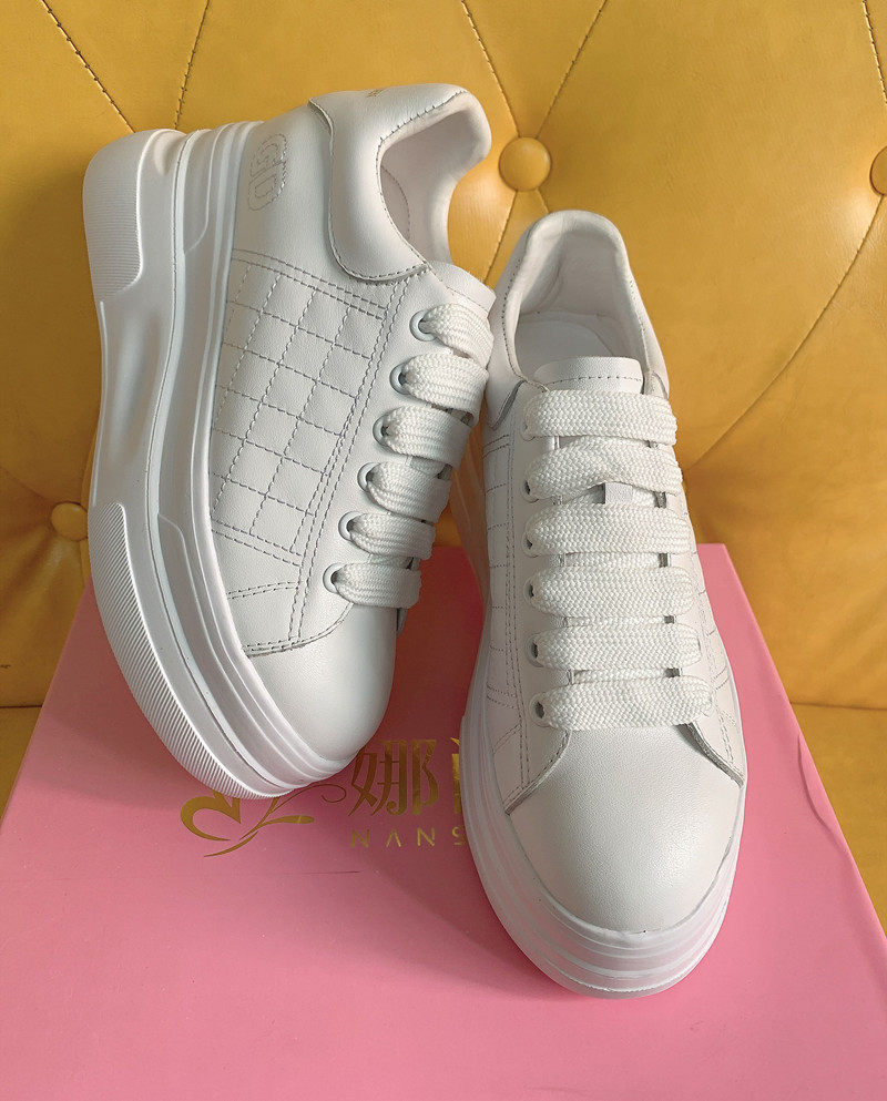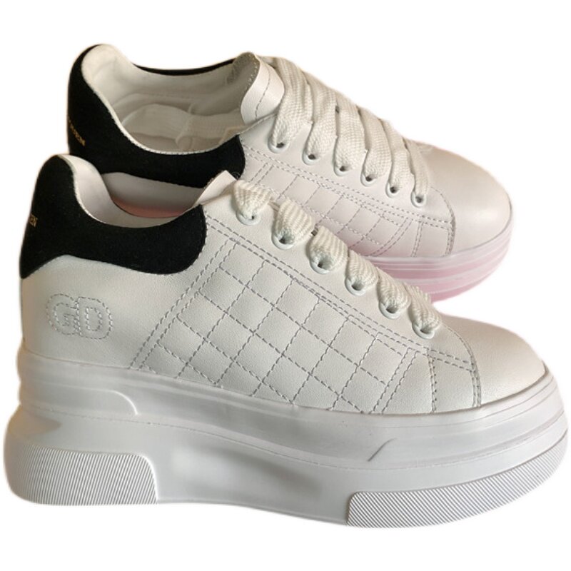 高跟绣菱格春季新款头层牛皮厚底女鞋 内增高松糕鞋 纯色鞋子小白