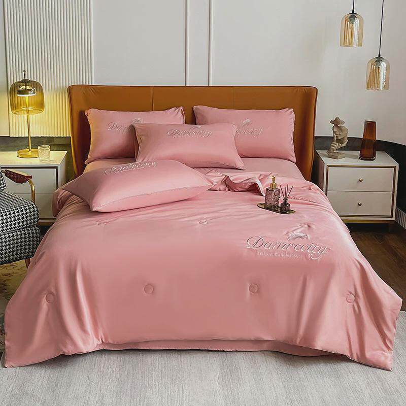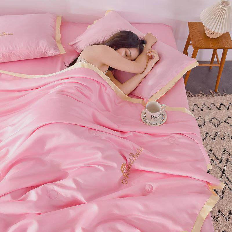 冰丝四件套夏被床笠可机洗酒红夏凉被水洗薄款单双人可床上薄被子