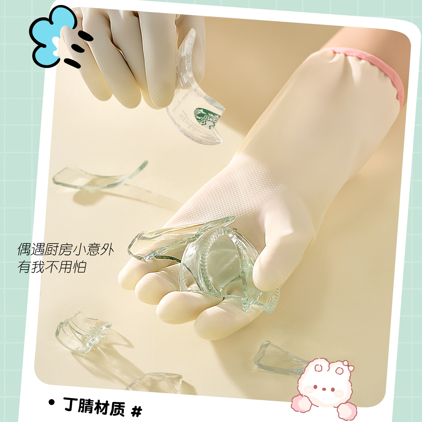 靓涤丁腈手套家务洗碗女厨房耐用加厚刷碗洗碗洗衣服防水胶皮清洁