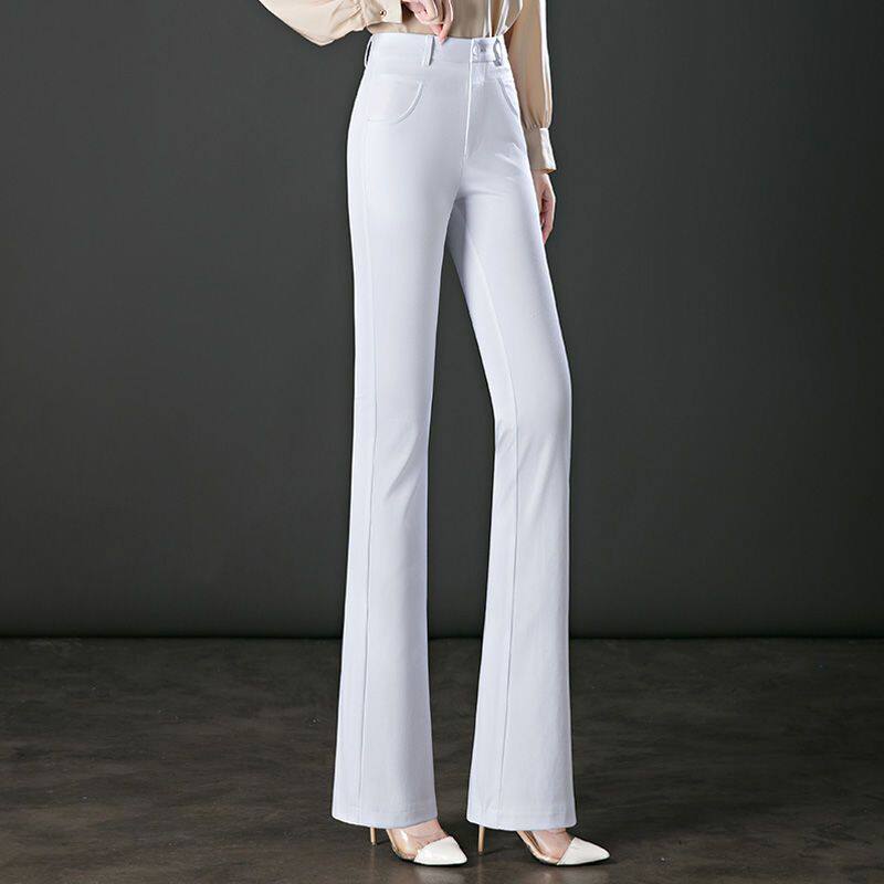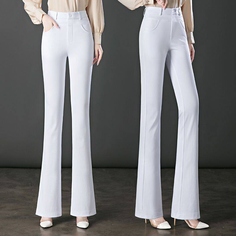 白色裤子喇叭裤夏季女款爆款2026新款高腰大码修身显瘦弹力微喇裤