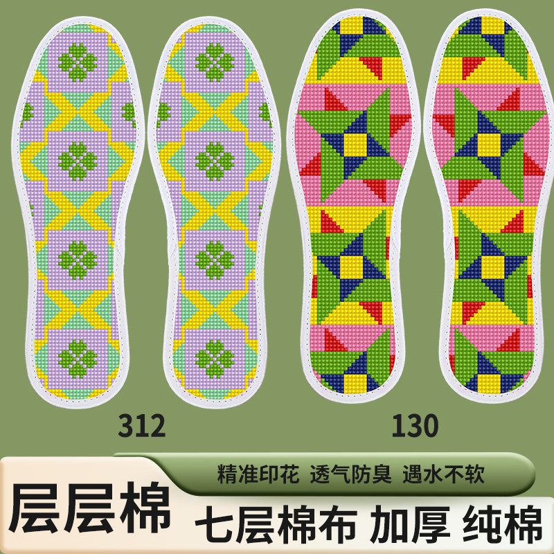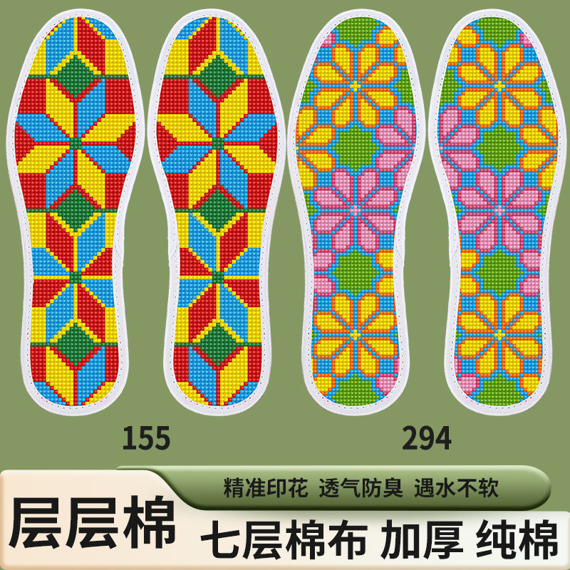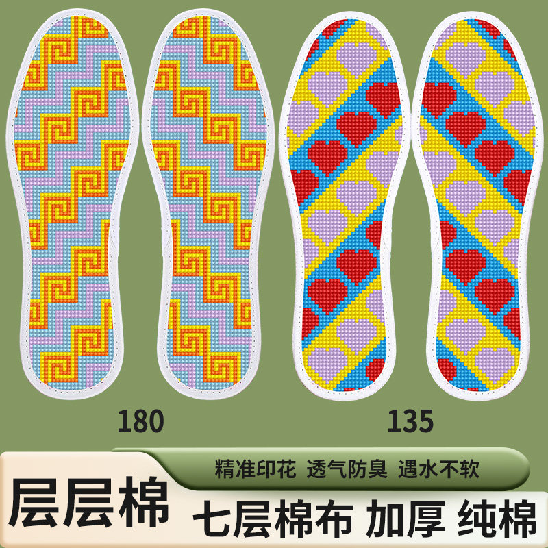 【两双】七层棉布十字绣鞋垫新款男女自己绣半成品简单加厚带针线