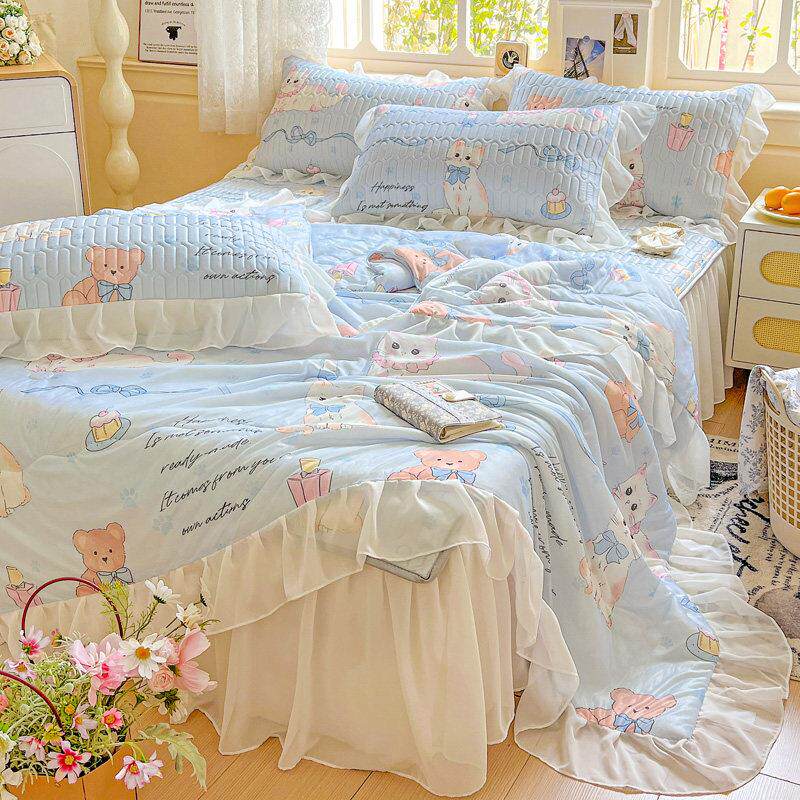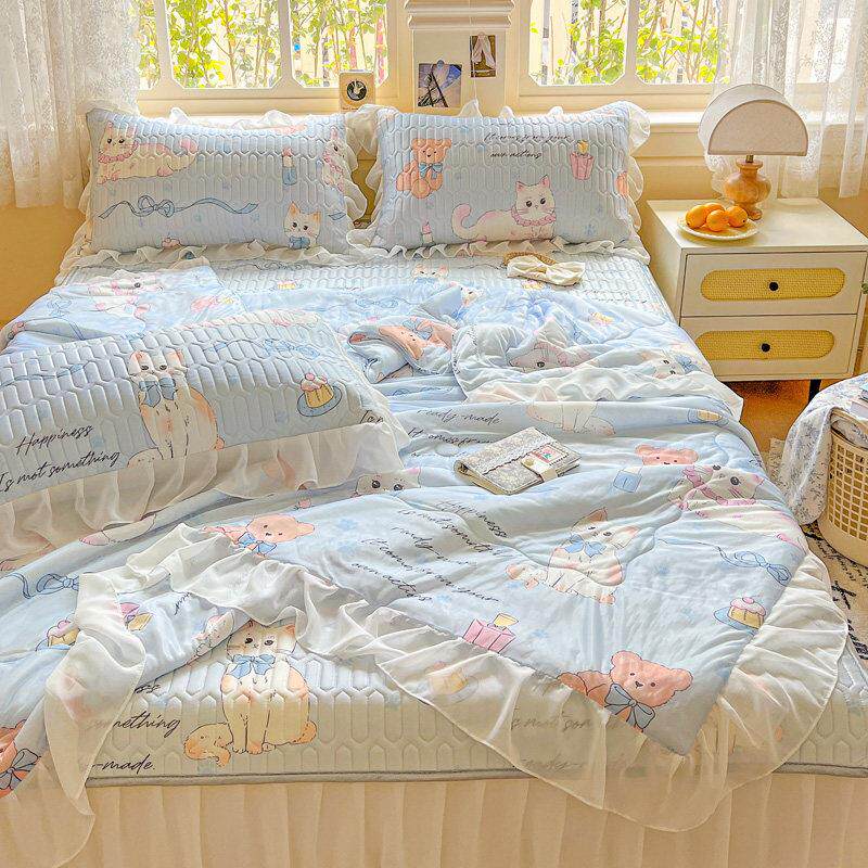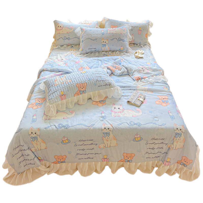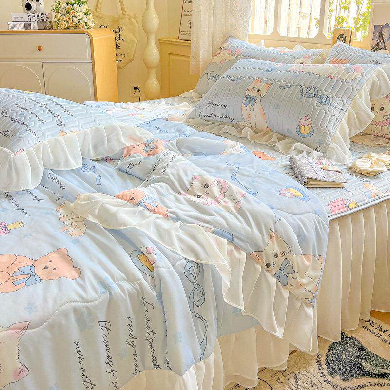 夏季乳胶凉席夏凉被床上四件套2025新款公主风冰丝被套三件式床组