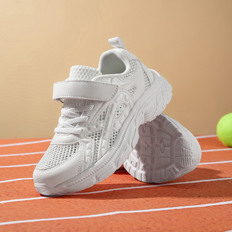 夏天透气网面儿童运动鞋全黑色男童鞋子中大童女孩单网纯白跑步鞋