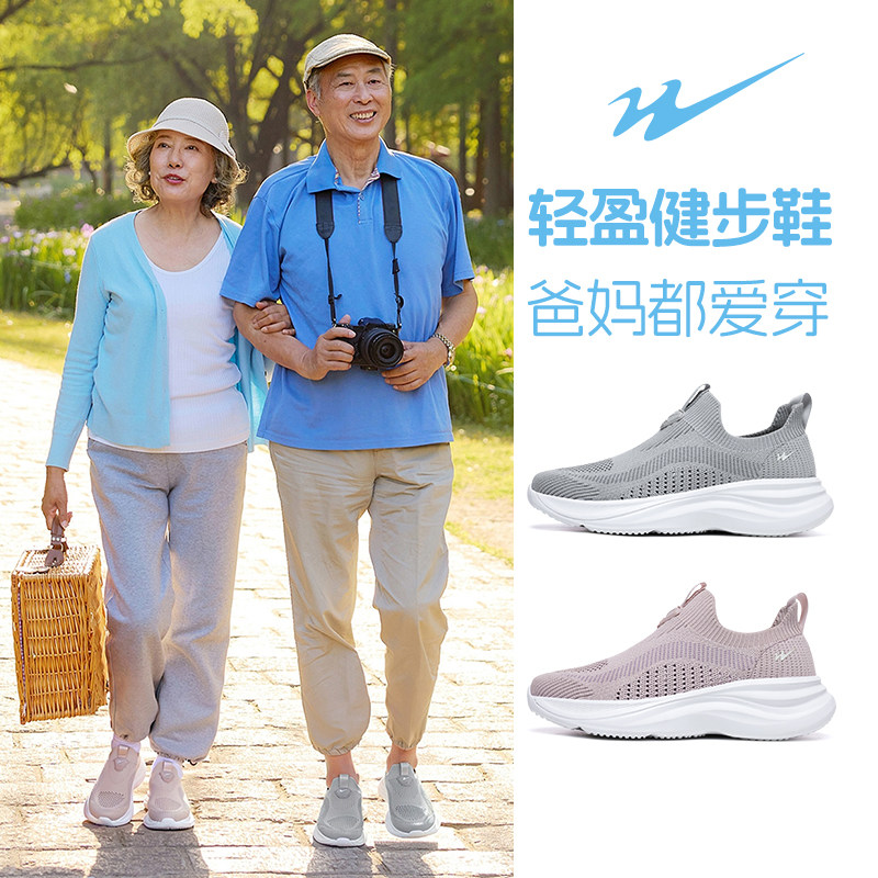 双星一脚蹬男鞋2025夏季新款网面透气休闲鞋中老年健步鞋爸爸鞋男