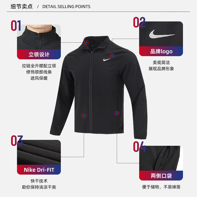 【自营】耐克外套男秋季新款户外梭织透气运动服休闲立领夹克男