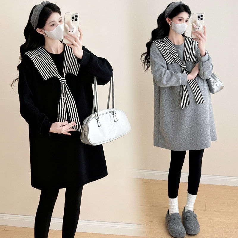 大码孕妇卫衣春秋连衣裙女韩版宽松减龄洋气披肩上衣中长款200斤