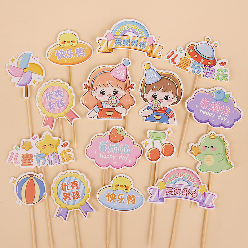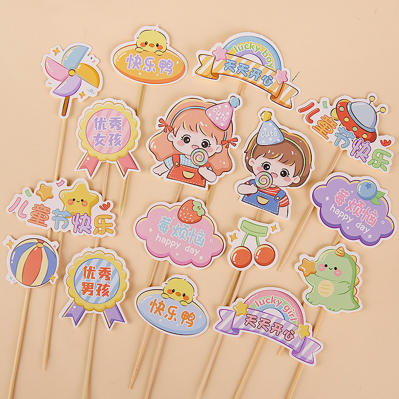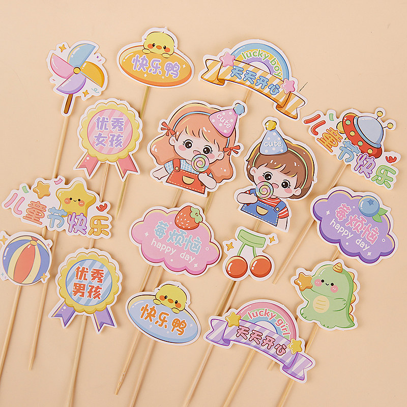 61儿童节蛋糕装饰插件男孩女孩莓烦恼开心鸭生日装扮材料包配件