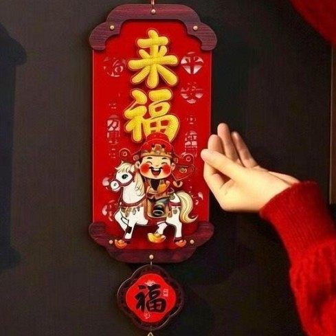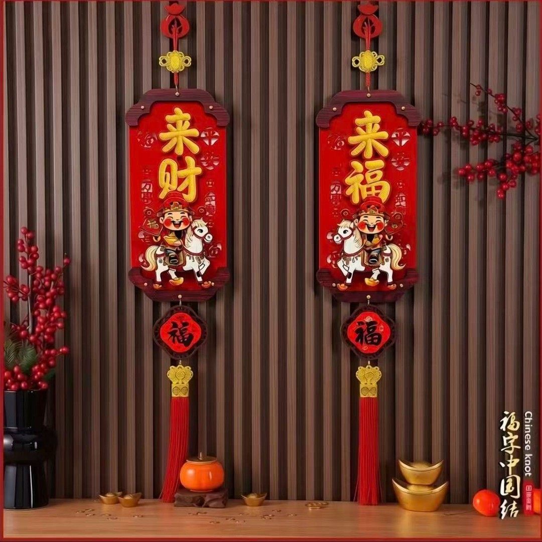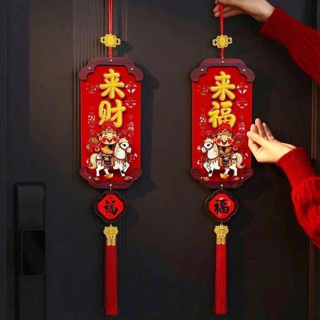 2026新年摇头财神白马木质挂饰新房乔迁客厅墙面通用春节布置用品