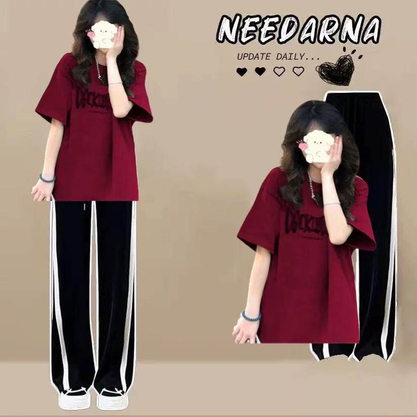 2026夏季新款初中学生少女装套装青少年酒红T恤女大童穿搭一整套