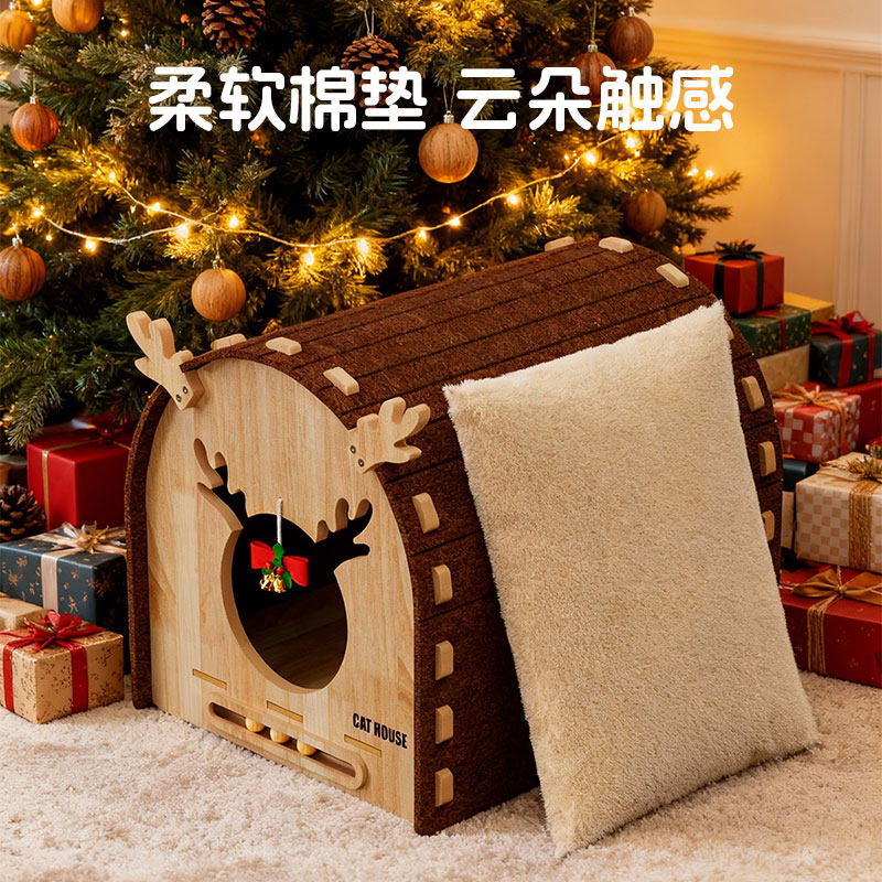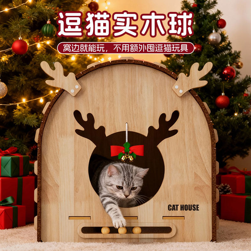 圣诞猫抓板猫窝一体耐磨不掉屑四季通用猫咪双层超大睡窝磨爪玩具