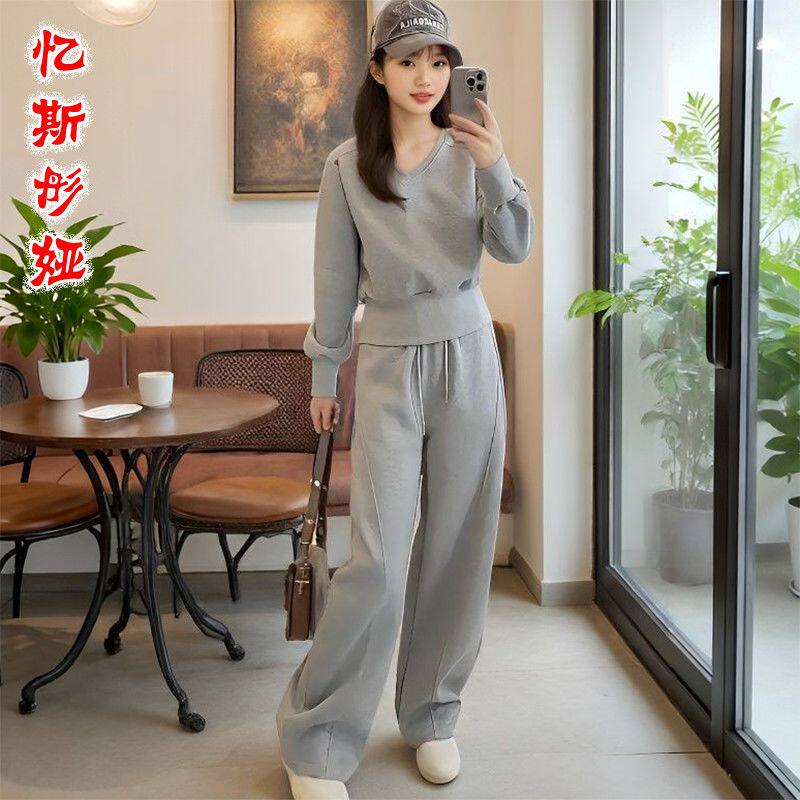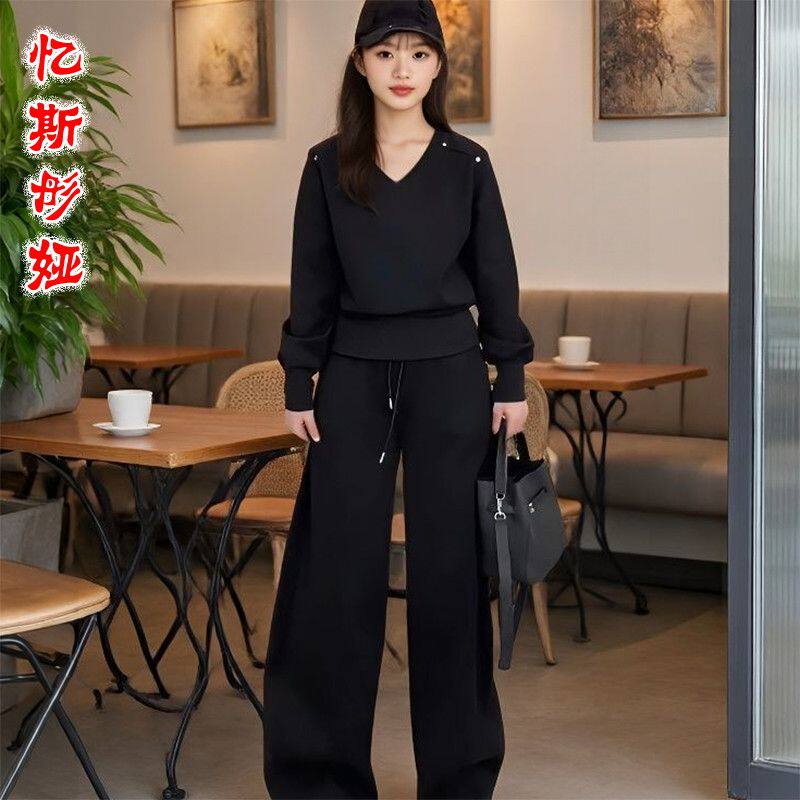 时尚休闲运动套装女2026早春新款宽松减龄洋气卫衣阔腿裤两件套女