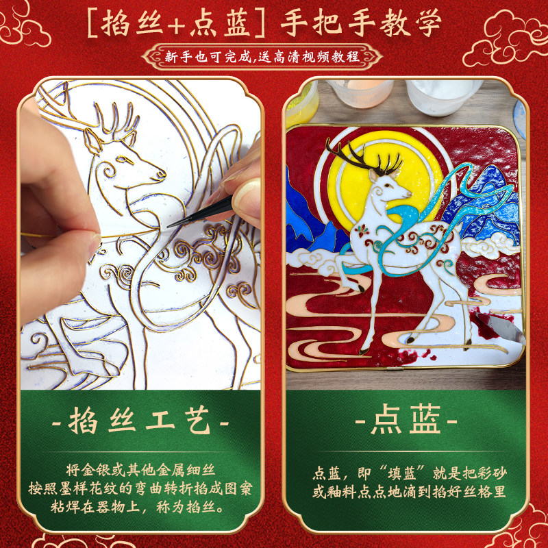 景泰蓝掐丝珐琅diy手工材料非遗工艺品礼物品珐琅画摆件画盘底板
