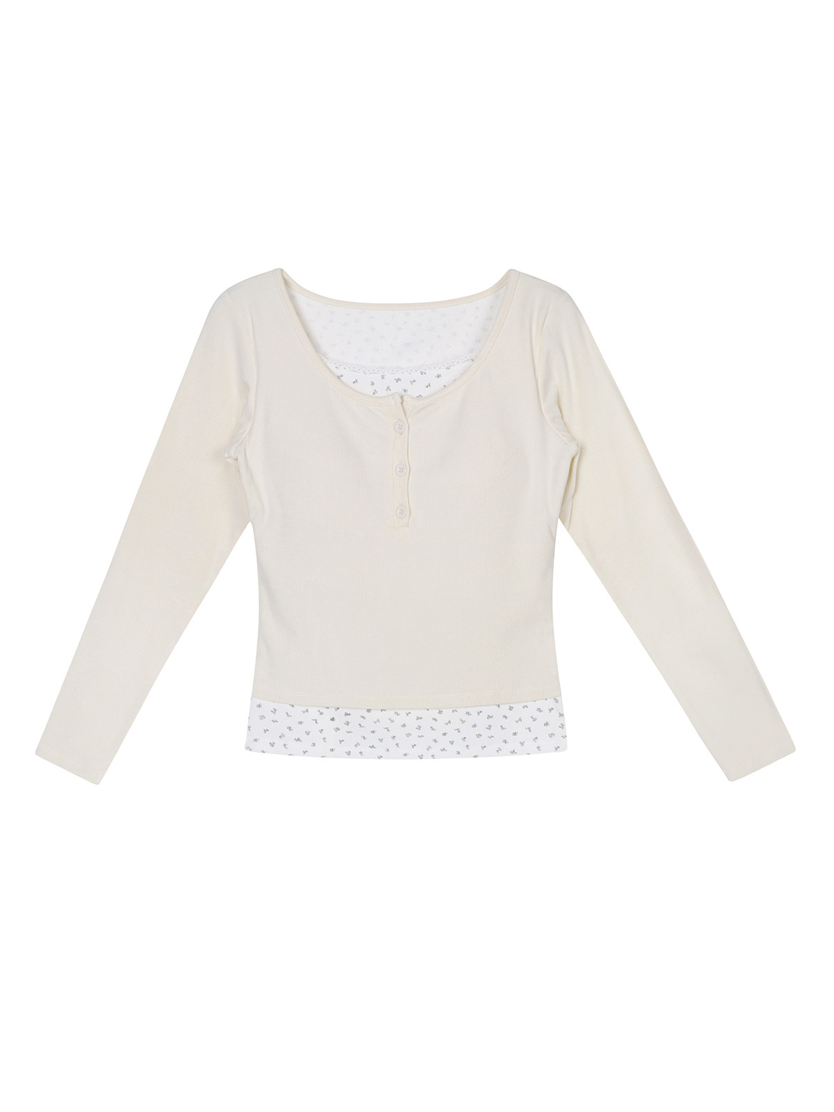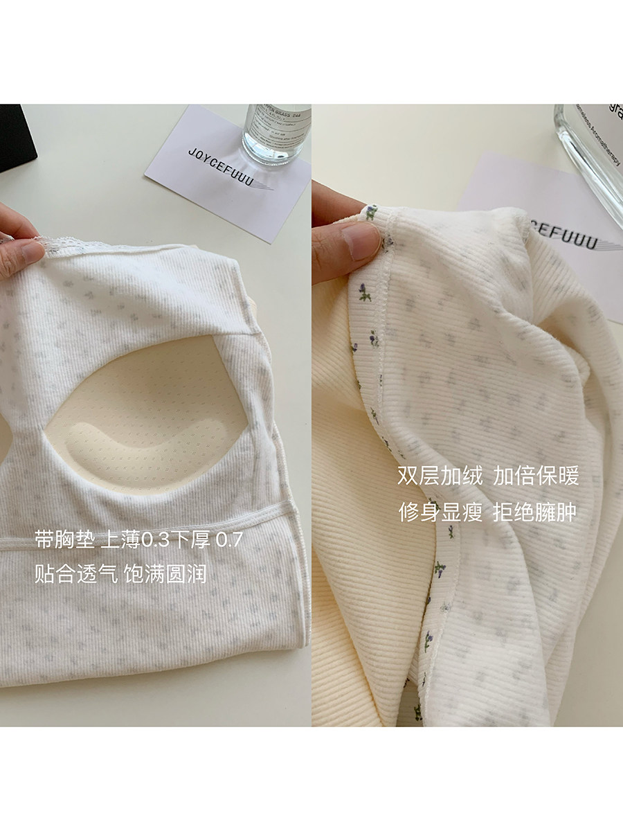 JoyceBra秋冬双层加厚假两件碎花打底衫上衣可外穿显瘦保暖内衣女