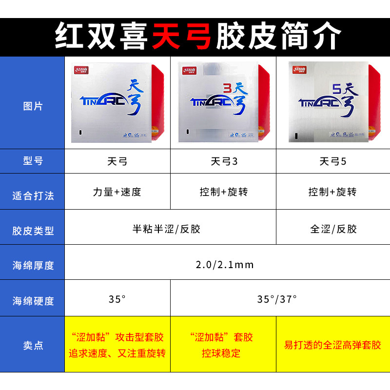 红双喜乒乓球拍胶皮天弓3 天弓5乒乓球反胶套胶内能涩性蛋糕海绵
