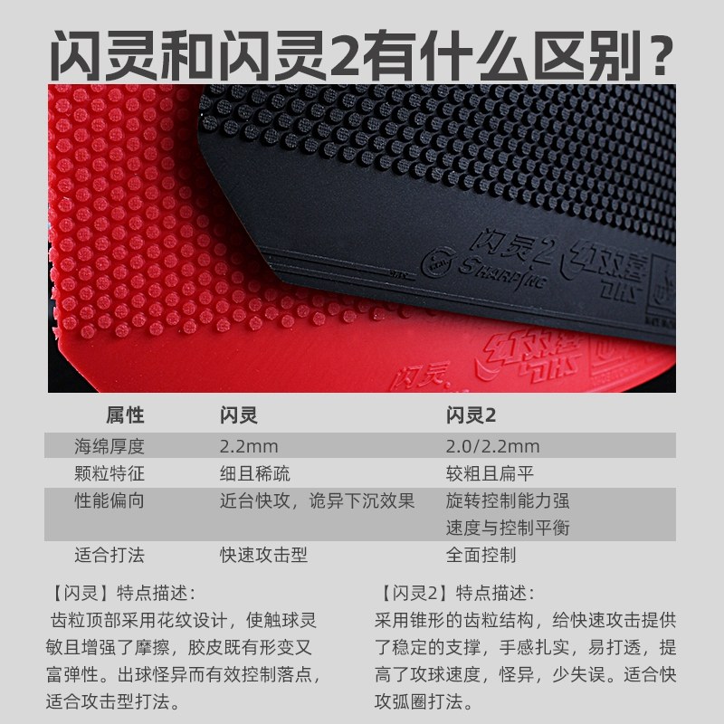 红双喜乒乓球拍胶皮闪灵生胶套胶快速度颗粒高胶闪灵2兵乓球套胶