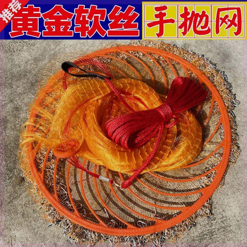 大飞盘式撒渔网手抛网鱼网新款加粗黄金丝焊接链条钢拉丝渔网撒网