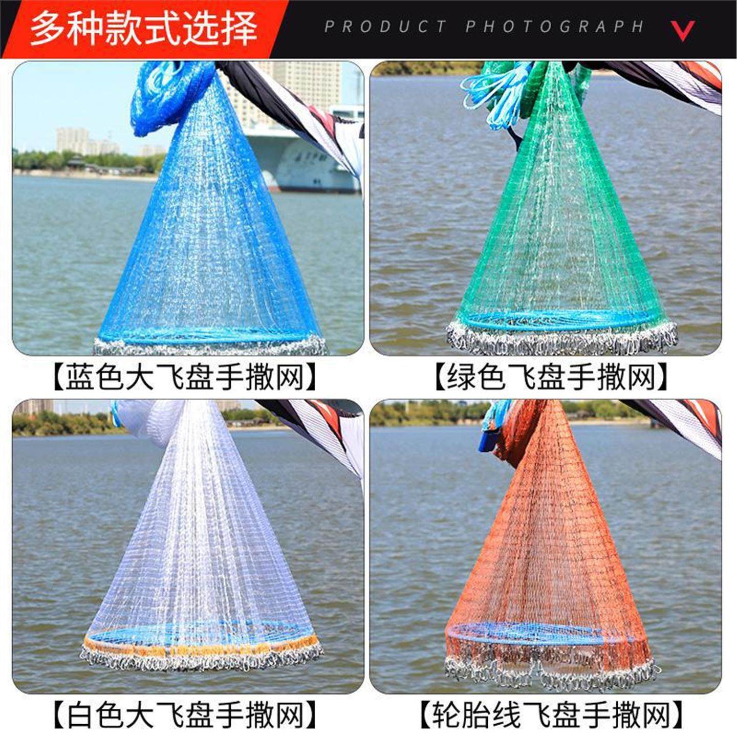 大飞盘式加粗鱼丝线新款撒网手抛网渔网鱼线手抛网钢拉丝加重铁坠