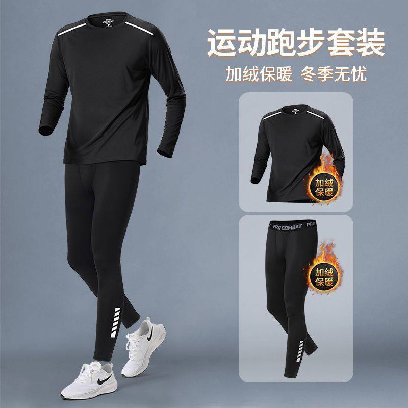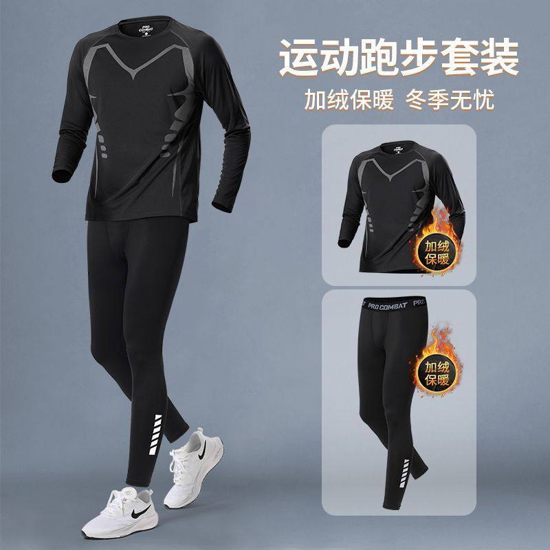 运动套装男秋冬季跑步训练服加绒速干健身专业晨跑服男士篮球冬天