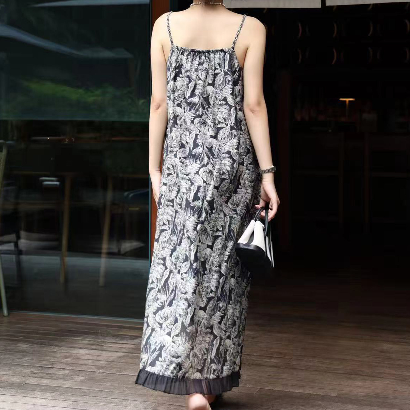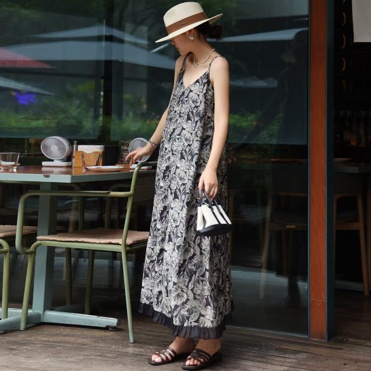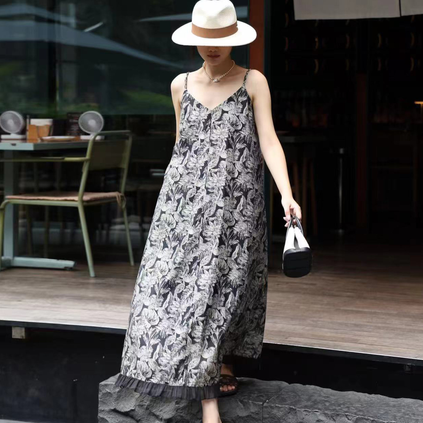 吊带连衣裙轻奢高级感2025春季新款原创女装设计师款复古印花长裙