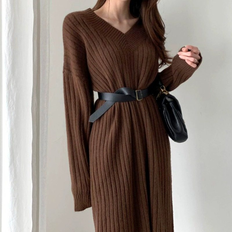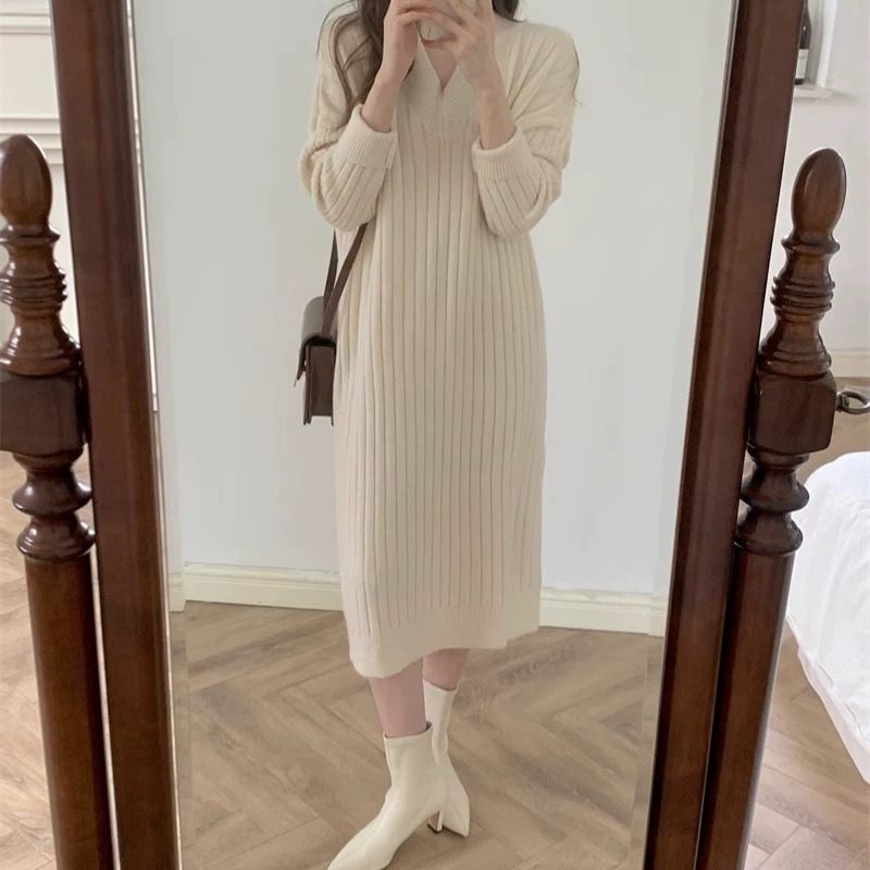 2025年新款秋冬配大衣内搭长款毛衣打底针织连衣裙子女装冬季长裙