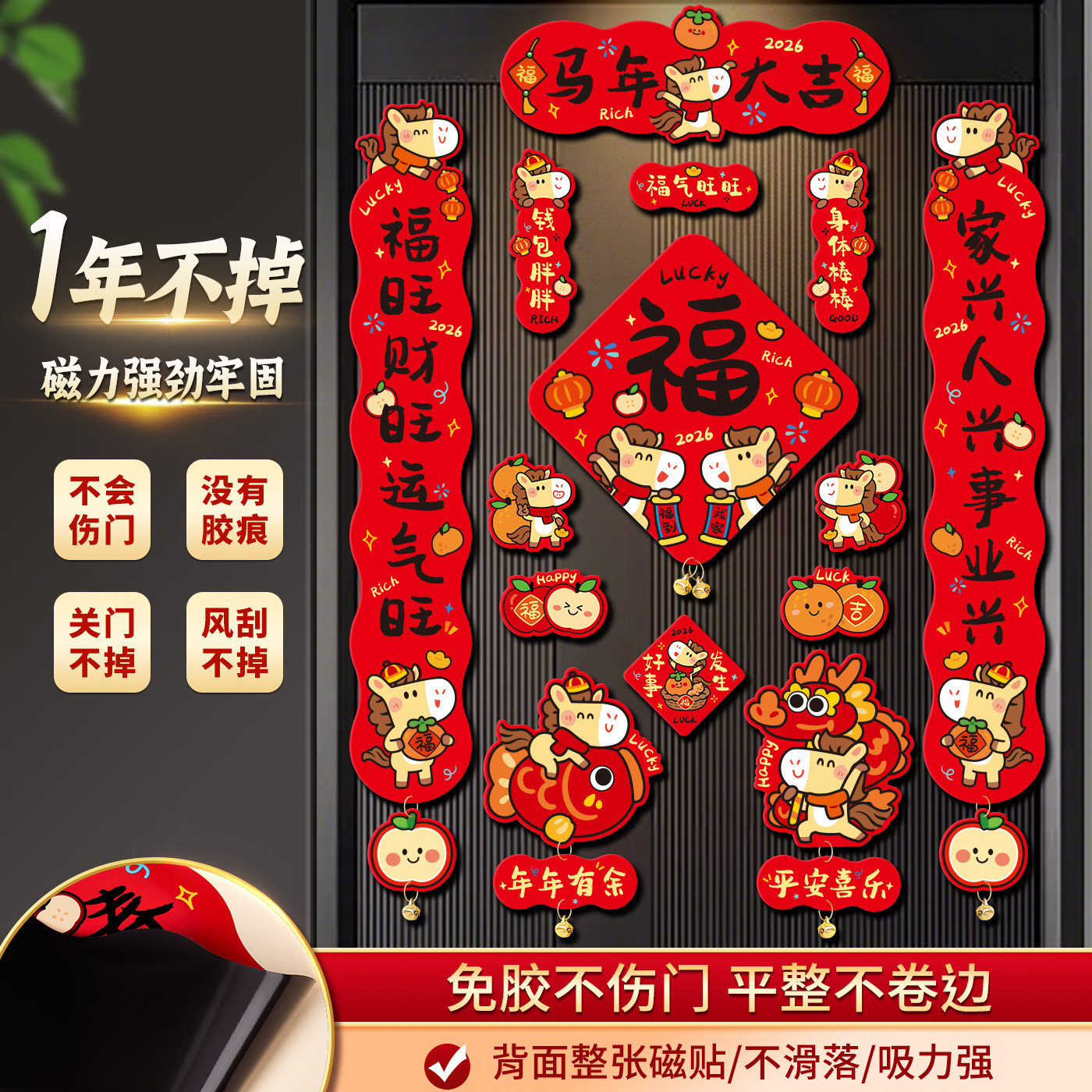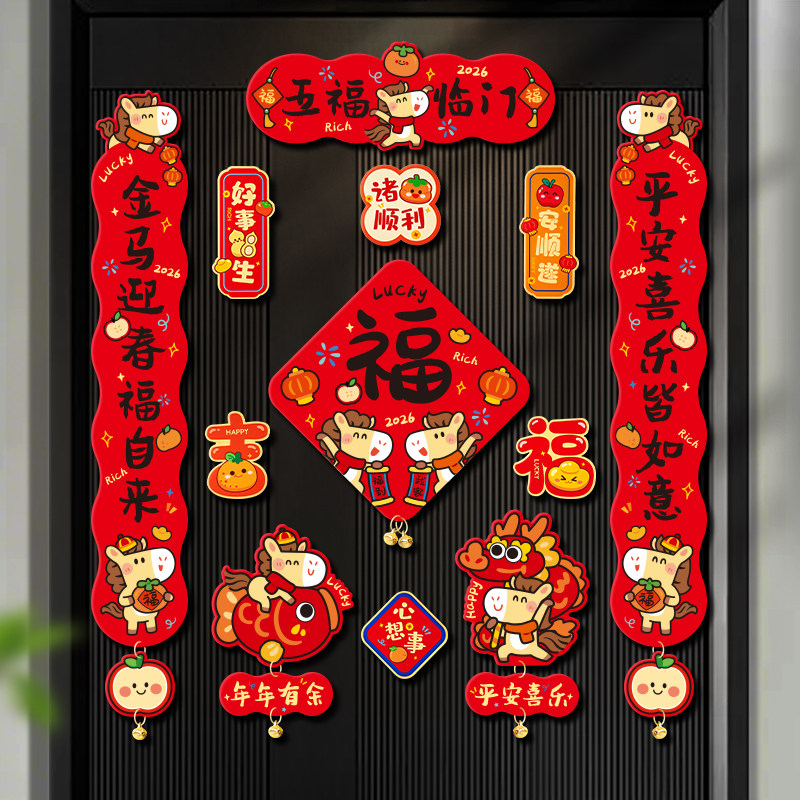 马年磁吸对联2026新款创意大门春联新年春节装饰氛围布置入户门贴