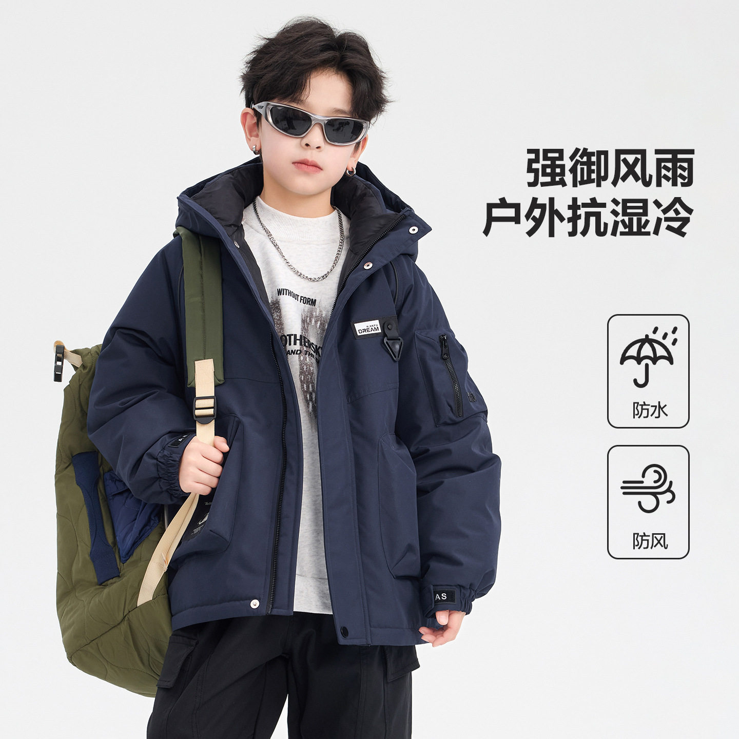 羽绒服童装男孩子冬装户外防水工装冲锋衣儿童青少年加厚防寒外套