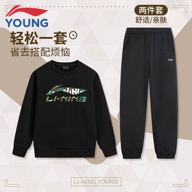 【卫衣+卫裤】李宁儿童套装儿童卫衣宽松外套透气长裤男童两件套